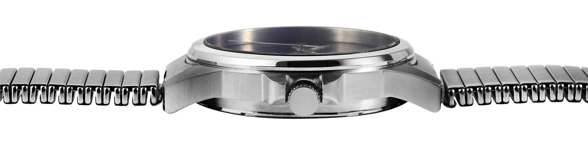 Mit einem Gehäusedurchmesser von 38 mm ist die Uhr präsent, wirkt aber dennoch elegant und dezent am Arm. Das flexible Edelstahl-Zugarmband ermöglicht ein einfaches Überstreifen ohne Verschluss. Die Uhr hat eine Gesamtlänge von ca. 21 cm und passt sich Ihrem Handgelenk bequem an.