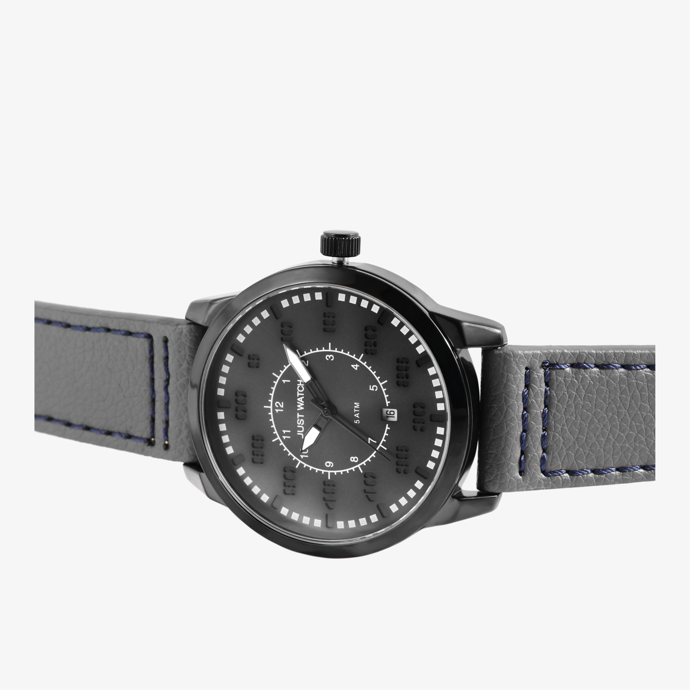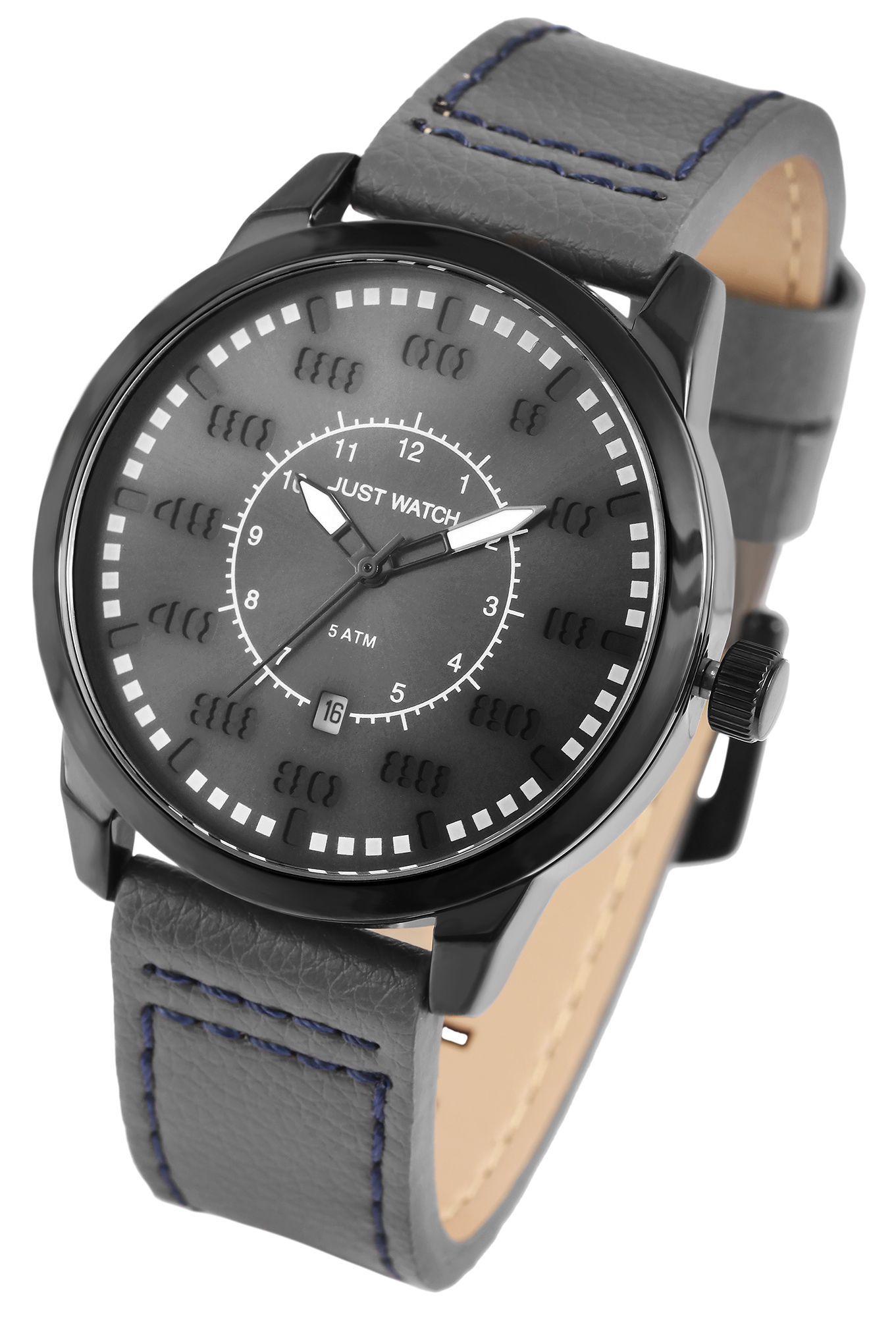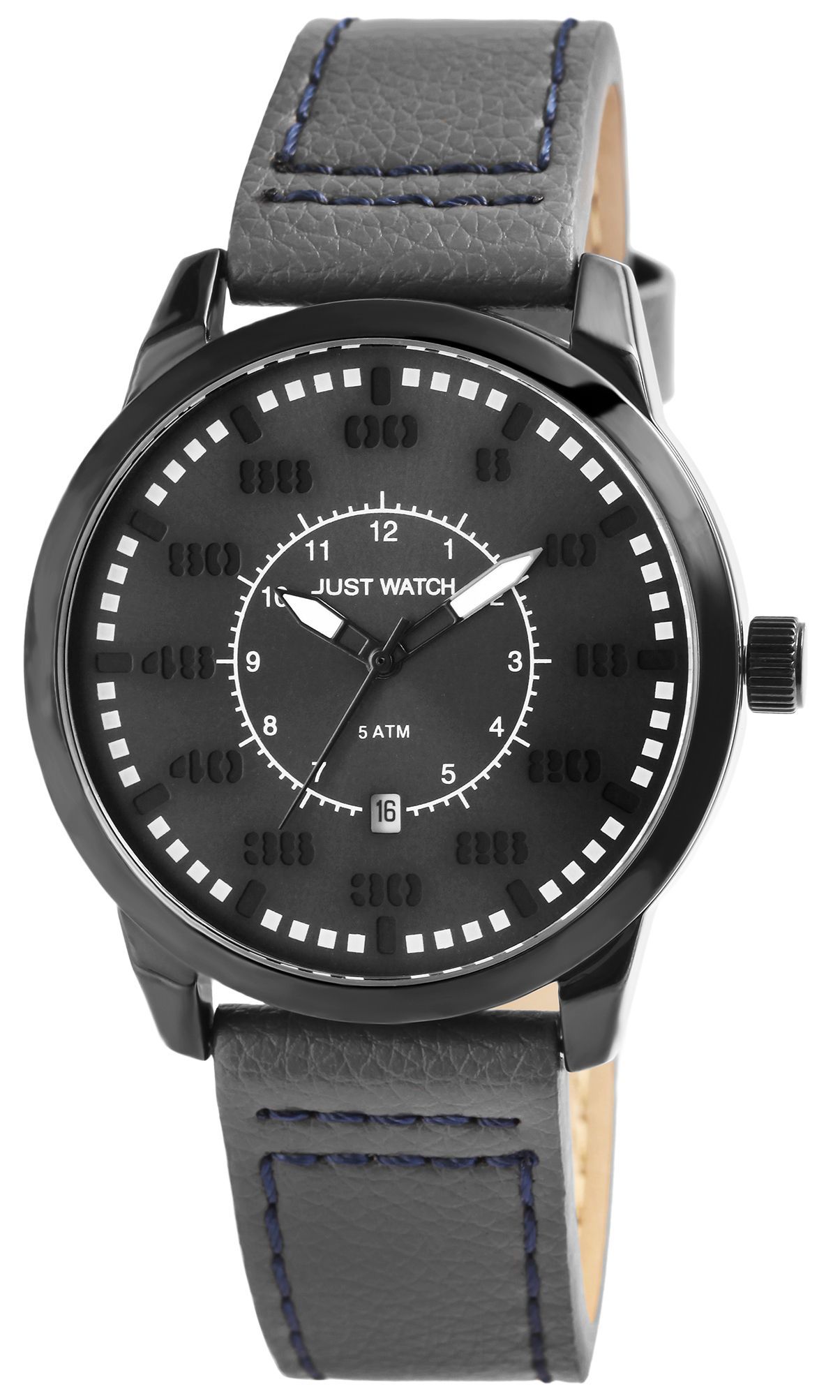 Produktinformationen "JUST WATCH "Benedict" Herrenuhr mit Echtlederband, Grau"