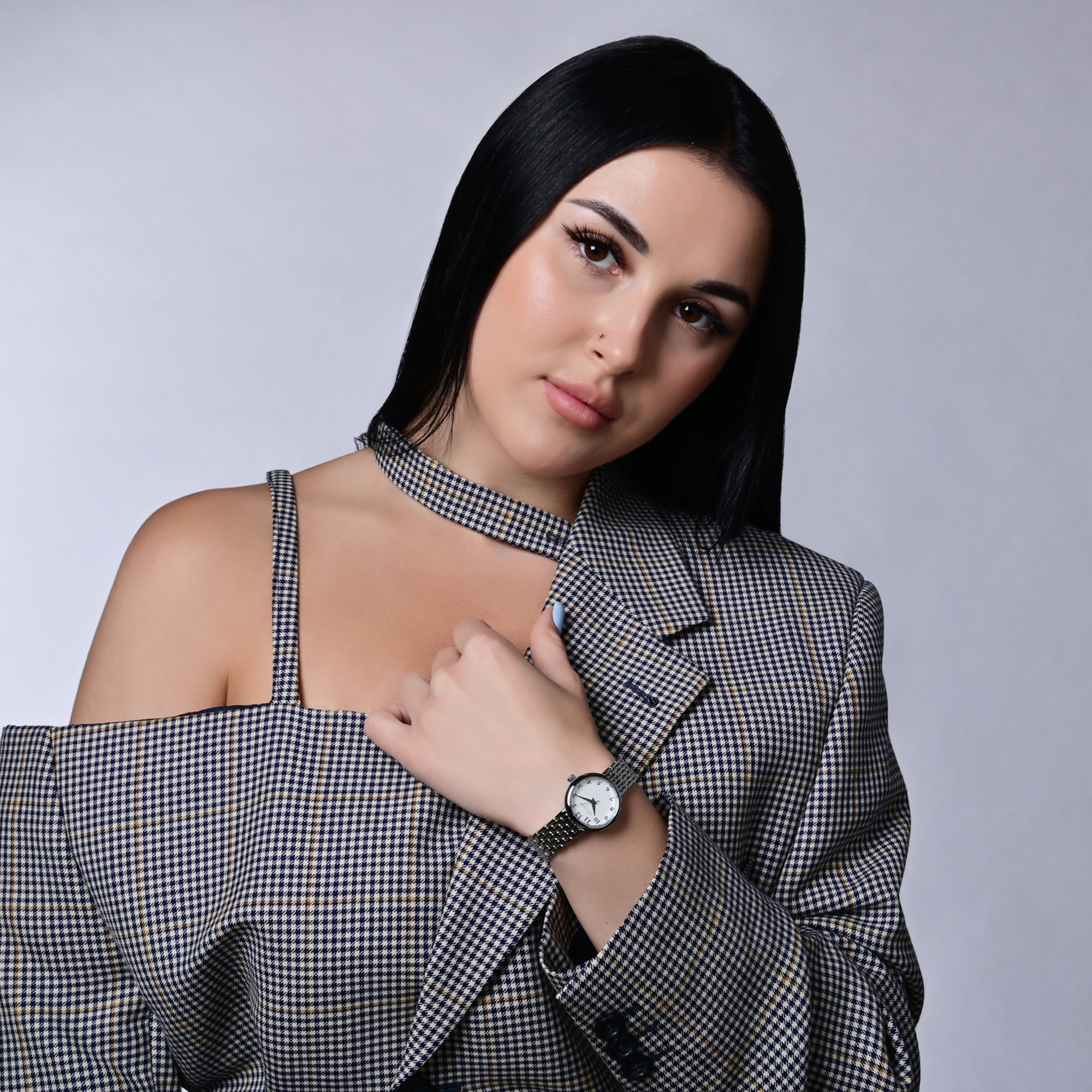 Das geflochtene Armband besitzt am Steg eine Breite von 14 mm und mit dem Gehäuse eine Gesamtlänge von 18 cm, verschlossen wird das Band mit einem Butterfly-Verschluss, der für einen besonders sichern Sitz am Handgelenk sorgt. Das Armband, der Verschluss sowie auch der Gehäuseboden sind aus hochwertigem, hypoallergenem Edelstahl gefertigt, der für eine besondere Langlebigkeit und Korrosionsbeständigkeit der Uhr sorgt.