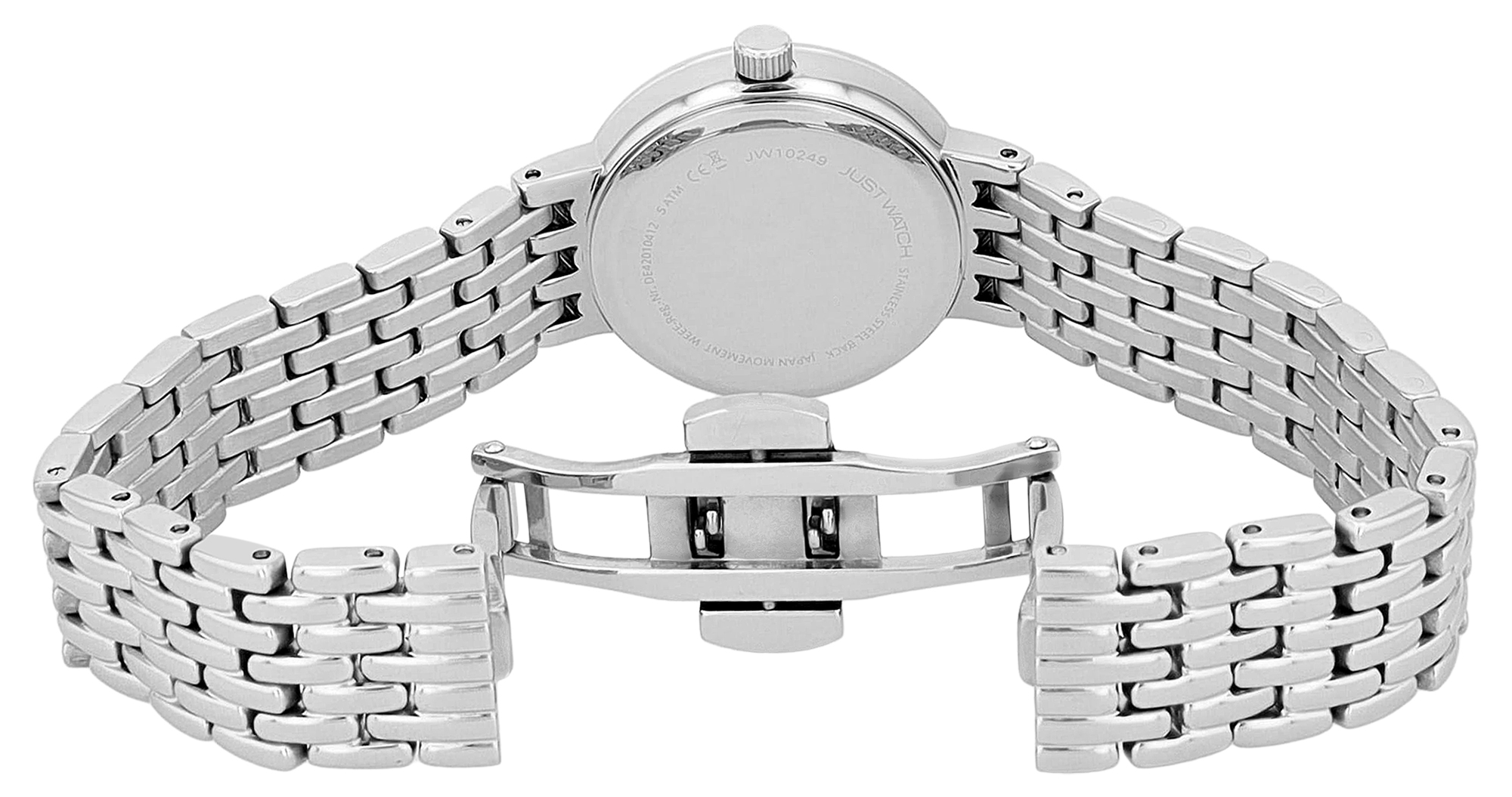 Produktinformationen "JUST WATCH Damenuhr "Akari" mit Edelstahlband, geflochten, Ø 28 mm, 5 ATM, silberfarben/weiß"
