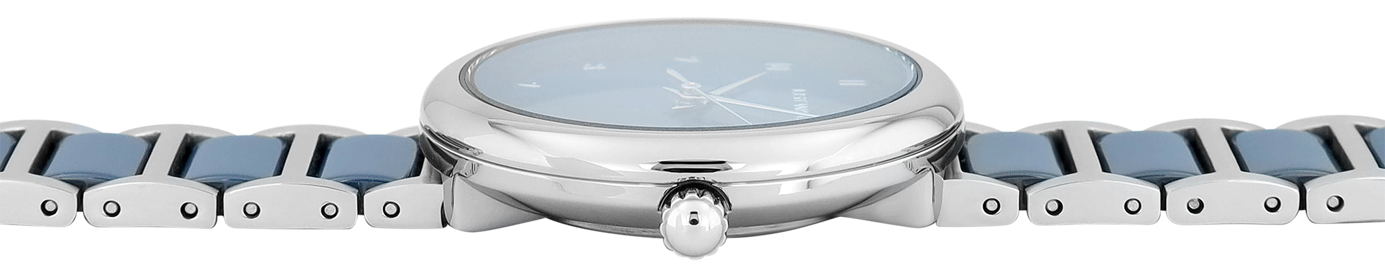 Boden und Rahmenelemente des Armbandes sowie die Schmetterlingsschließe sind aus haltbarem und hypoallergenem Edelstahl gefertigt, der die Langlebigkeit dieser schönen Uhr sowie ihre Hautfreundlichkeit garantiert. Ein besonderer Eyecatcher sind die Keramikglieder, welche, eingelassen und verbunden mit dem Edelstahlrahmen des Bandes eine attraktive Flechtoptik erzeugen und eine perfekte Fusion von Vintage und Moderne ergeben. Die Gesamtlänge dieser klassischen Damenuhr liegt bei 20 cm, die Breite beträgt 14 mm, durch die professionelle Entnahme von Einzelgliedern aus dem Armband der Uhr kann diese jedoch gekürzt und individuell an das eigene Handgelenk angepasst werden.