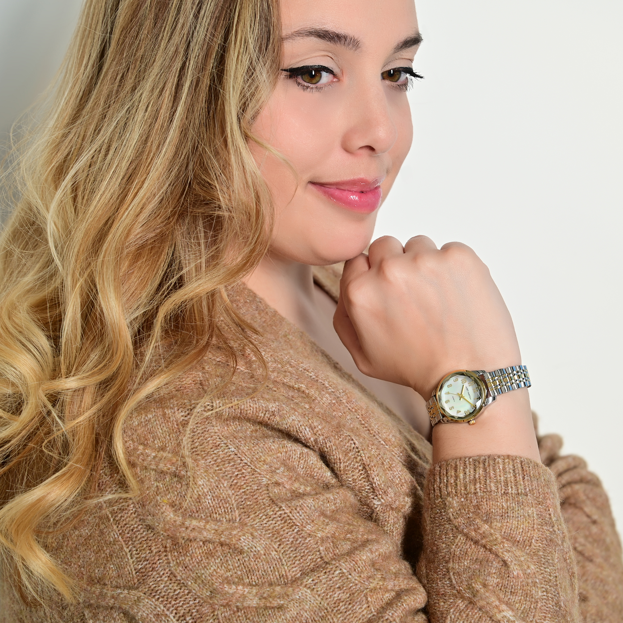 Das Ziffernblatt präsentiert sich je nach Modell in einem edlen Perlmutt-Finish oder in anderen stilvollen Ausführungen und ist mit gut lesbaren arabischen Ziffern versehen.