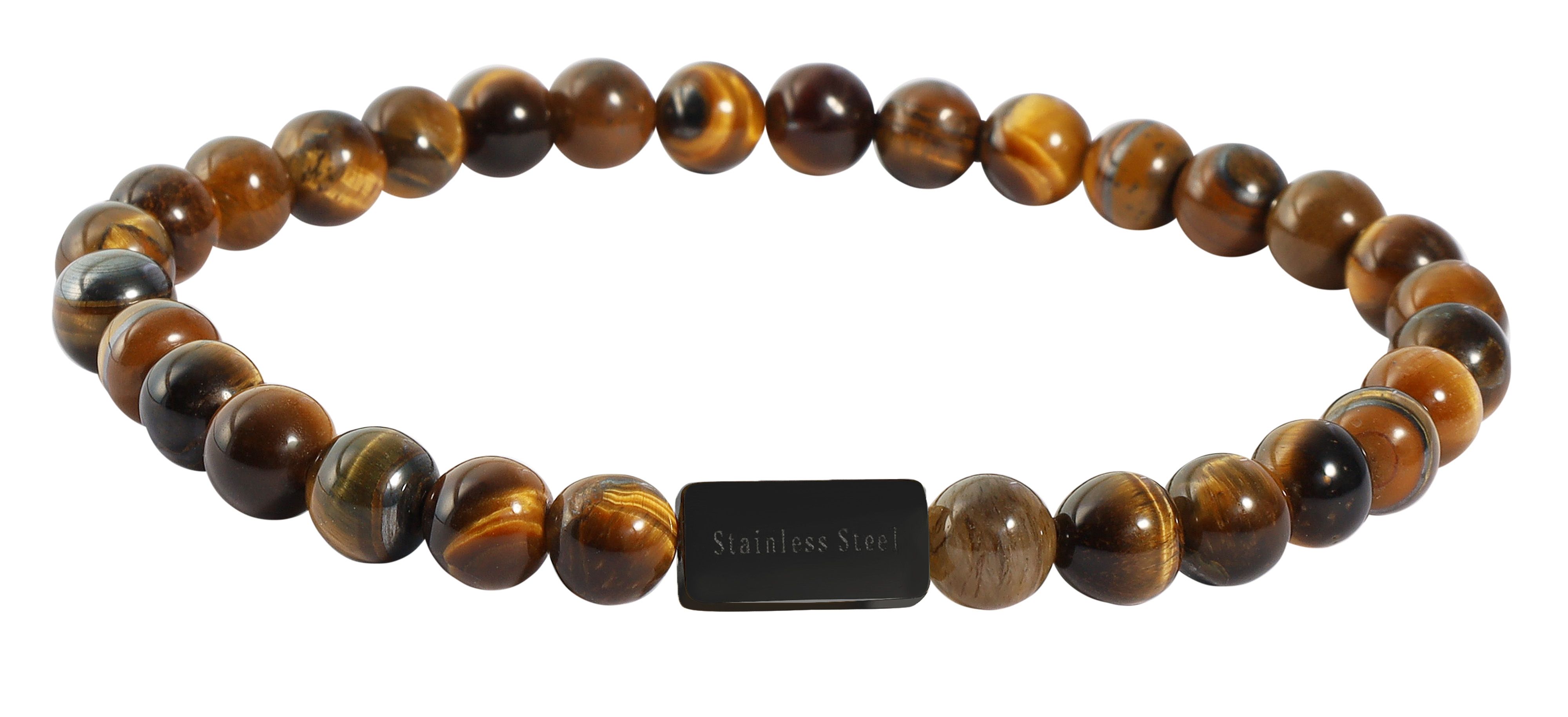 Erleben Sie die maskuline Eleganz dieses Akzent Herrenarmbandes - ein markantes Schmuckstück, das alle Blicke auf sich ziehen wird und die Persönlichkeit seines Trägers unterstreicht. Das Armband besteht aus wertvollem Naturstein, der einen besonderen Glanz hat. Die sorgfältig ausgewählten Perlen mit einem Durchmesser von 6 mm formen eine harmonische Einheit, ein Highlight für jedes Hangelenk. Die Tiegeraugen-Kugeln reflektieren das Licht auf eine spezielle Art und Weise, die dem Stein Tiefe verleiht.
