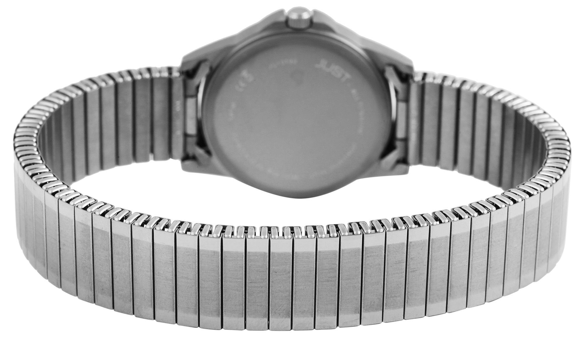 Die analoge 3-Zeiger Damenarmbanduhr der Marke Just verfügt über ein hochwertiges Quarzuhrwerk. Das praktische Zugarmband wurde aus Titan gefertigt und hat eine Anstoßbreite von 14 mm. Aufgrund des flexiblen Armbandes lässt sich die Uhr besonders bequem und einfach über das Handgelenk ziehen. Die Gesamtlänge der Damenuhr beträgt 21 cm. Das runde Titangehäuse mit Mineralglas hat einen Durchmesser von 27 mm und eine Gehäusehöhe von 6,5 mm. Auch der Gehäuseboden wurde aus Titan hergestellt. Zudem verfügt die Uhr über eine Wasserdichtigkeit von 5 bar. Die übersichtliche Einteilung des Zifferblattes ermöglicht ein einfaches und schnelles Ablesen der Uhrzeit. Als Zubehör zu Ihrem Produkt erhalten Sie eine Garantiekarte und eine Originalverpackung der Marke Just.