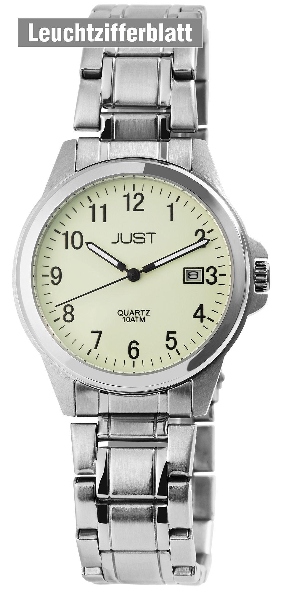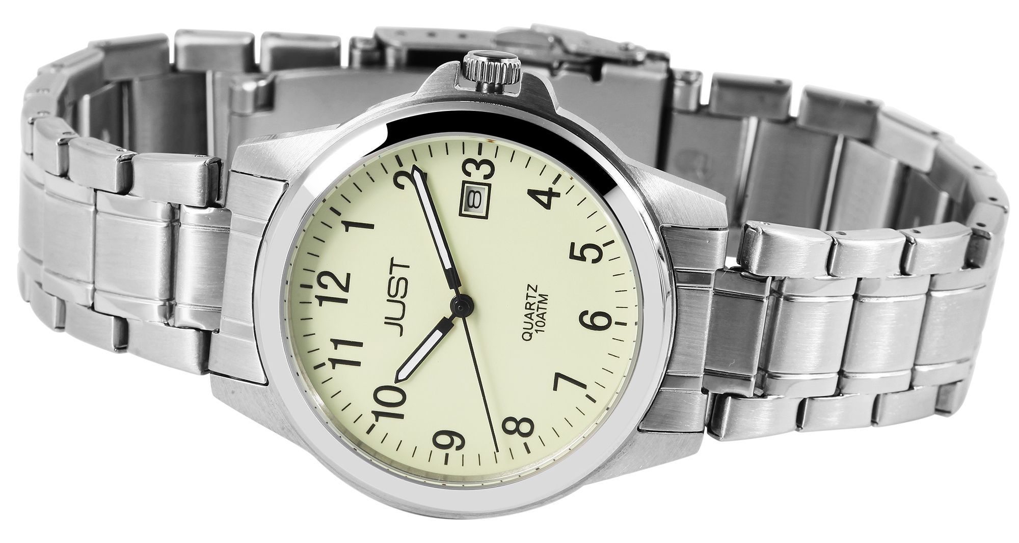 Produktinformationen "Just Edelstahl Herrenarmbanduhr, 3-Zeiger, Datumsanzeige, silberfarben, Luminova ZB"