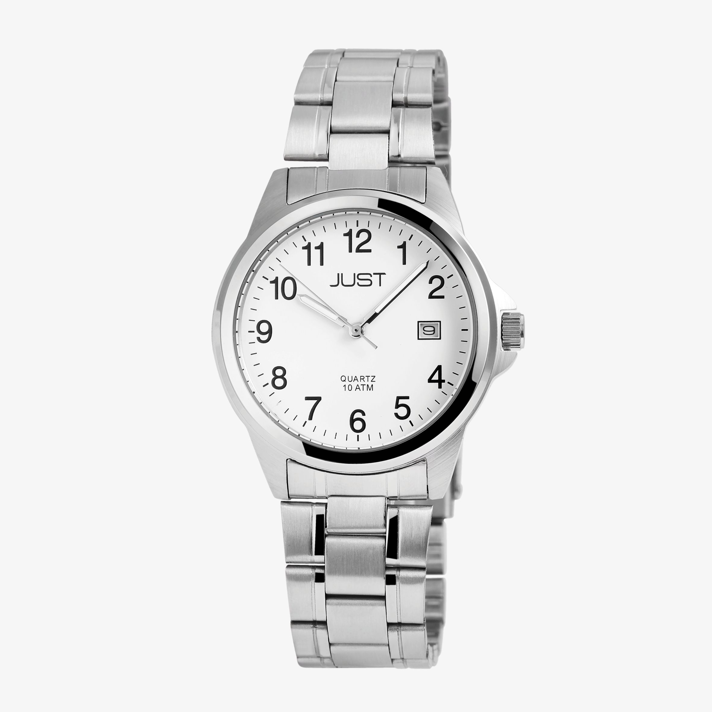 Produktinformationen "Just Edelstahl Herrenarmbanduhr, 3-Zeiger, Datumsanzeige, silberfarben, weißes ZB"