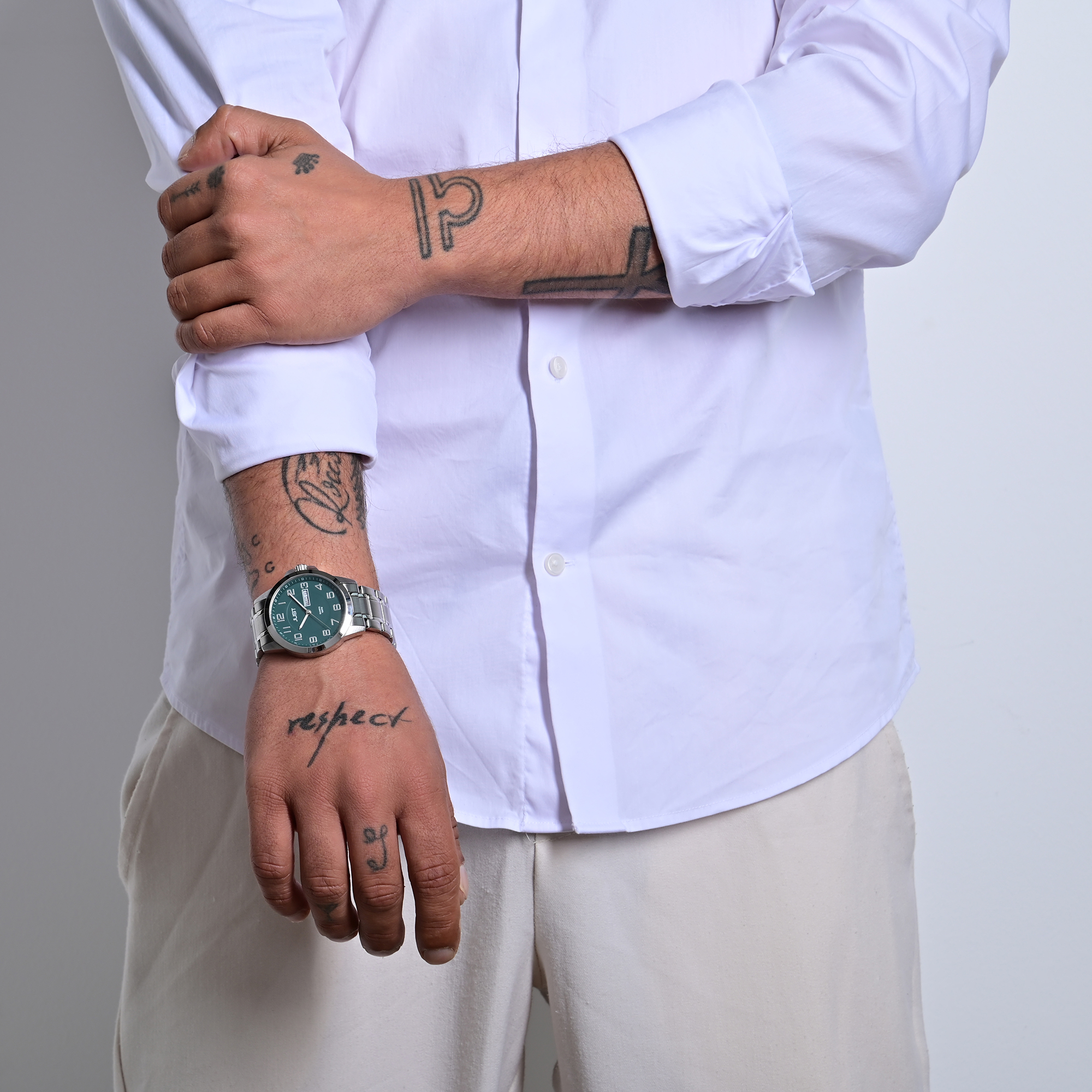 Die analoge 3-Zeiger Herrenarmbanduhr der Marke Just verfügt über ein hochwertiges Quarzuhrwerk. Das Gliederarmband wurde aus Edelstahl gefertigt und hat eine Anstoßbreite von 20 mm. Geöffnet und verschlossen wird es mit einer Edelstahl-Faltschließe inkl. Sicherheitsbügel. Die Gesamtlänge der Uhr beträgt 22,5 cm. Das runde Edelstahlgehäuse mit Mineralglas hat einen Durchmesser von 39 mm und eine Gehäusehöhe von 10,5 mm. Auch der Gehäuseboden wurde aus Edelstahl gefertigt. Zudem verfügt die Uhr über eine Datums- und Wochentagsanzeige und eine Wasserdichtigkeit von 10 bar. Die übersichtliche Einteilung des Zifferblattes ermöglicht ein einfaches und schnelles Ablesen der Uhrzeit. Des Weiteren lässt sich dank der mit Superluminova beschichteten Stunden- und Minutenzeiger die Zeit im Dunkeln ablesen. Als Zubehör zu Ihrem Produkt erhalten Sie eine Garantiekarte und eine Originalverpackung der Marke Just.