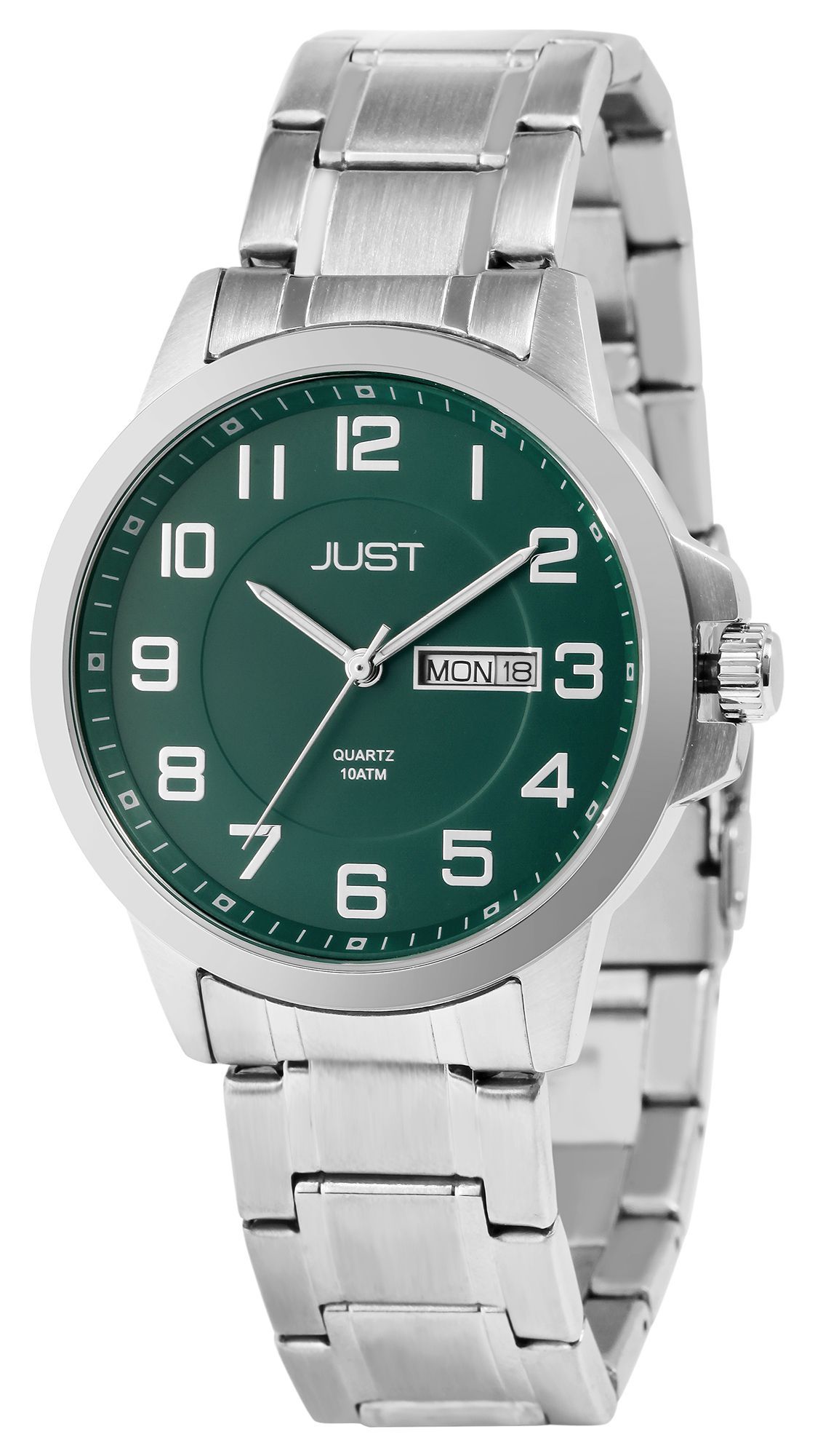 Produktinformationen "Just Herrenuhr mit Edelstahlarmband, 10 ATM, silberfarben/grünes ZB"