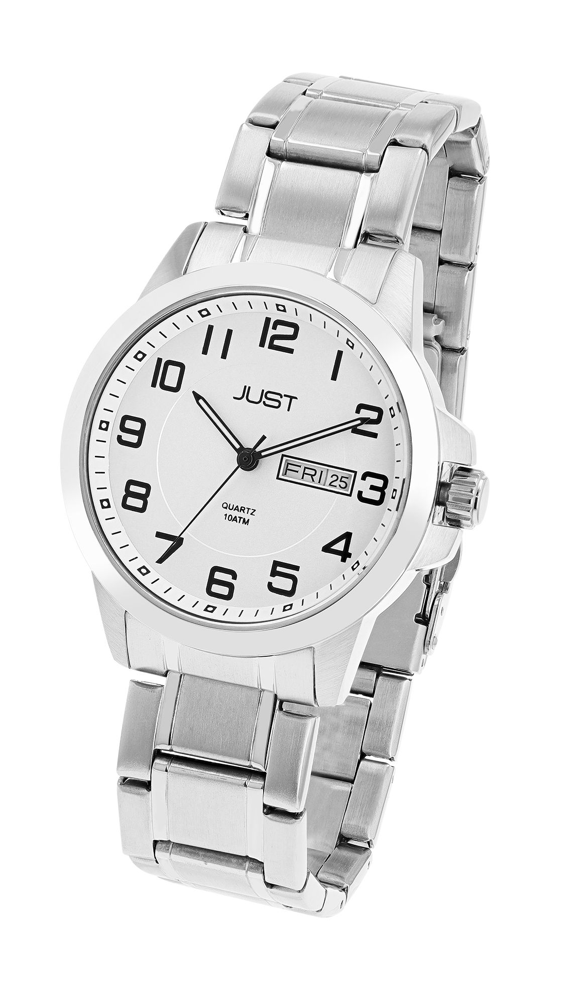 Produktinformationen "Just Herrenuhr mit Edelstahlarmband, 10 ATM, silberfarben/weißes ZB"