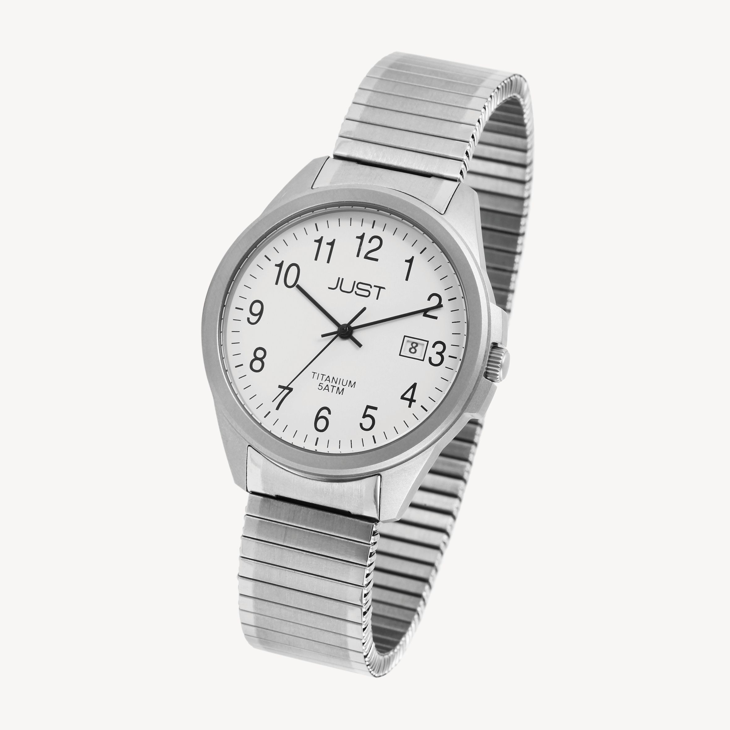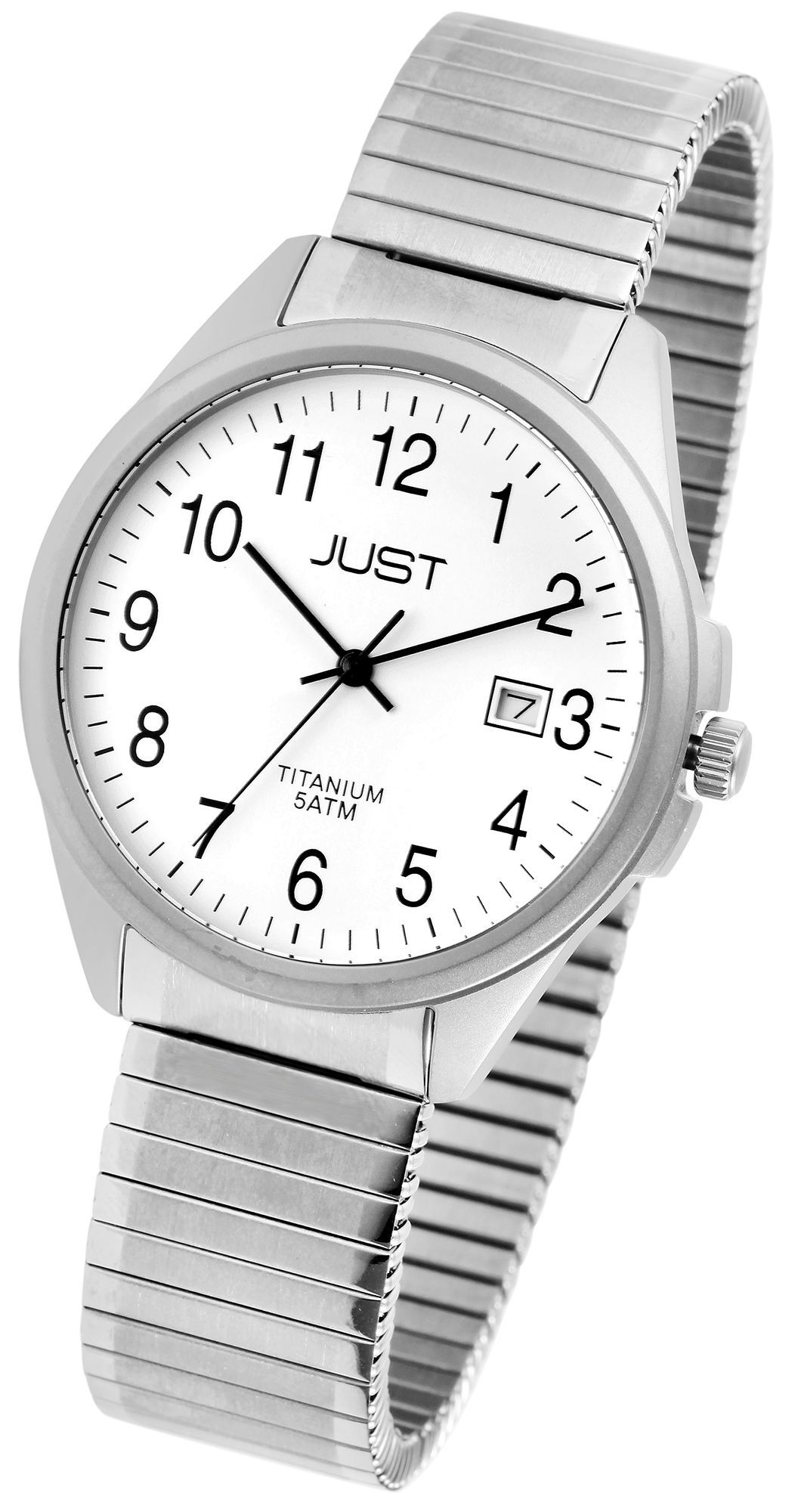 Produktinformationen "Just Herrenuhr mit Zugarmband, Titan, 5 ATM, weißes ZB"
