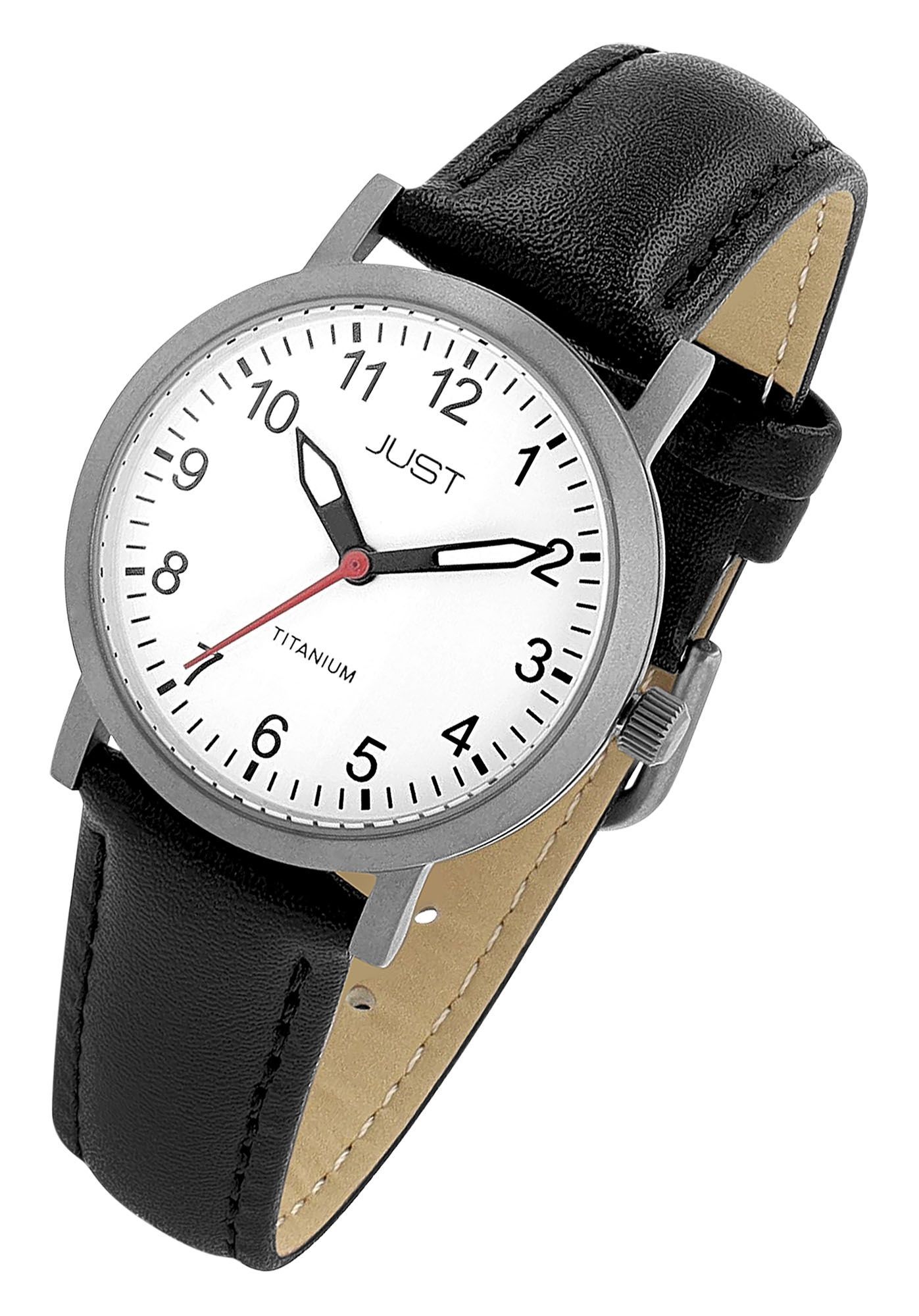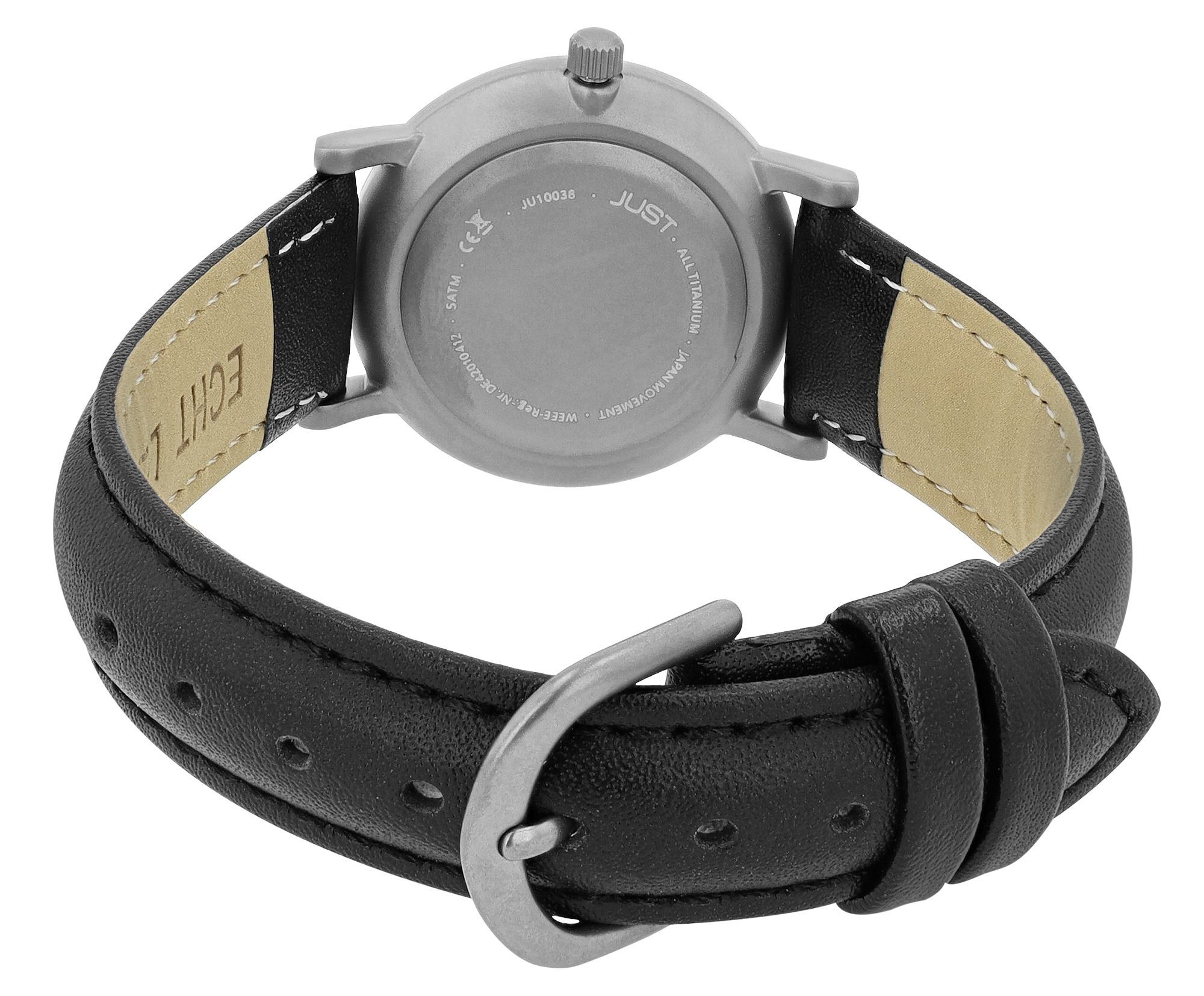 Produktinformationen "Just Titan Damenuhr mit Echtlederarmband, 5 ATM, schwarz/weiß"