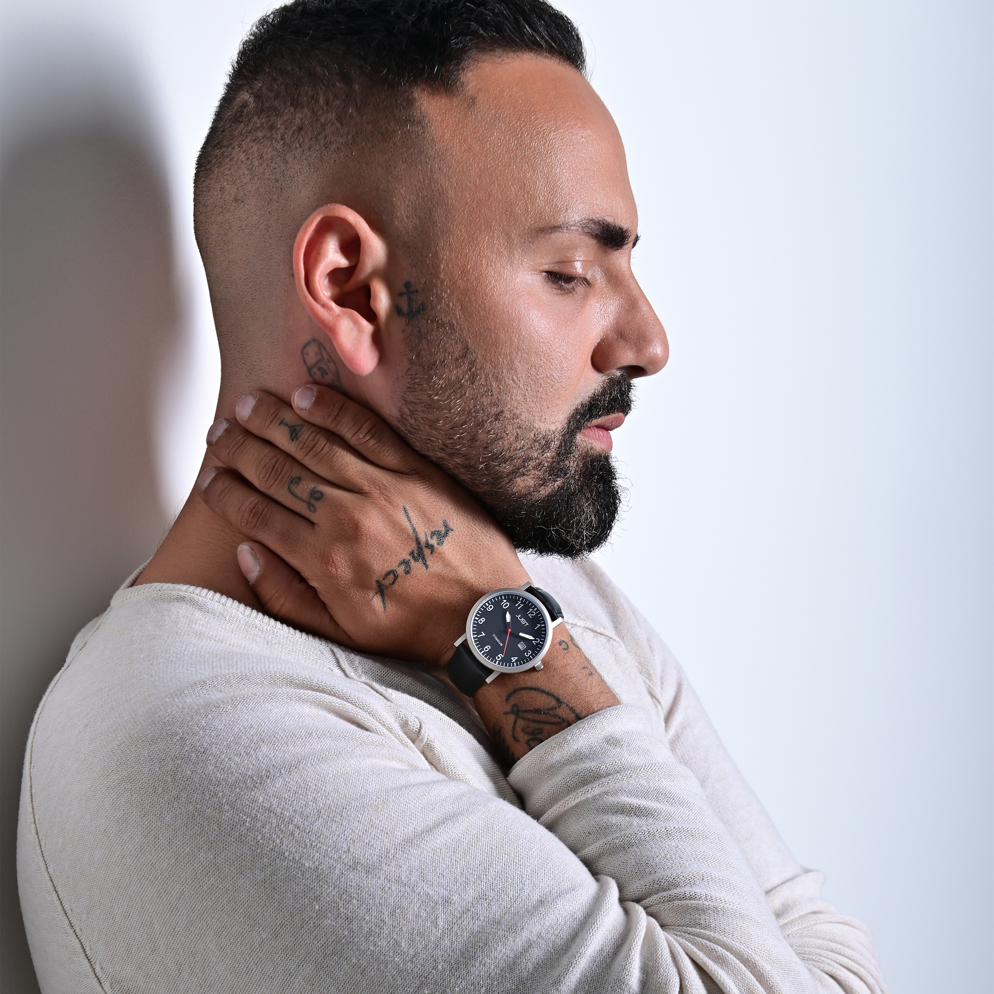 Die analoge 3-Zeiger Herrenarmbanduhr der Marke Just verfügt über ein hochwertiges Quarzuhrwerk. Das Armband wurde aus Echtleder gefertigt und hat eine Anstoßbreite von 20 mm. Geöffnet und verschlossen wird es mit einer Dornschließe aus Titan. Die Gesamtlänge der Uhr beträgt 24 cm. Das runde Titangehäuse mit Mineralglas hat einen Durchmesser von 40 mm und eine Gehäusehöhe von 9 mm. Auch der Gehäuseboden wurde aus Titan gefertigt. Zudem verfügt die Uhr über eine Datumsanzeige und über eine Wasserdichtigkeit von 5 bar. Der Kontrast des Zifferblattes zu den Indexen ermöglicht ein einfaches und schnelles Ablesen der Uhrzeit. Aufgrund der hochwertigen und hautfreundlichen Materialien eignet sich die Armbanduhr ideal für Allergiker.