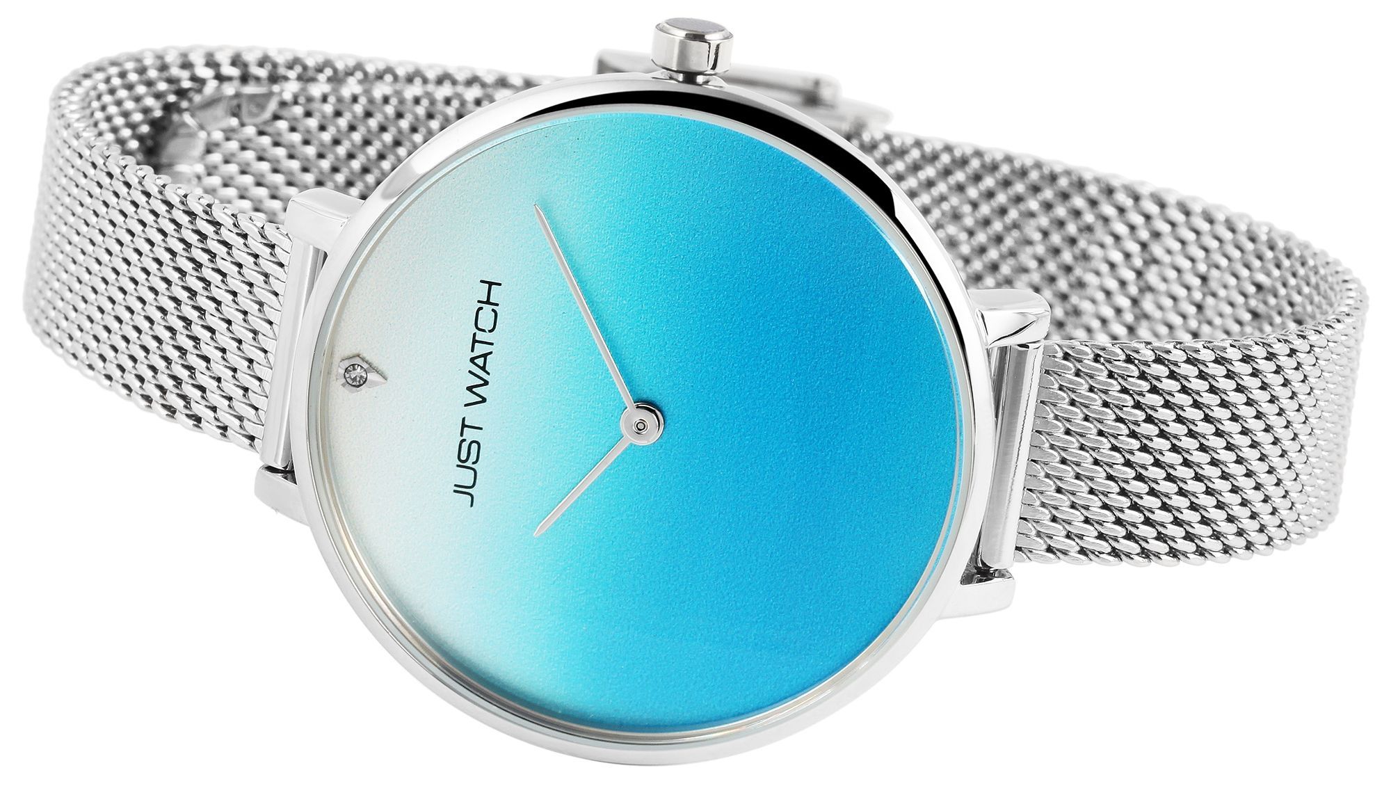 Produktinformationen "Just Watch Damenarmbanduhr, Edelstahlband, silberfarben/türkis"