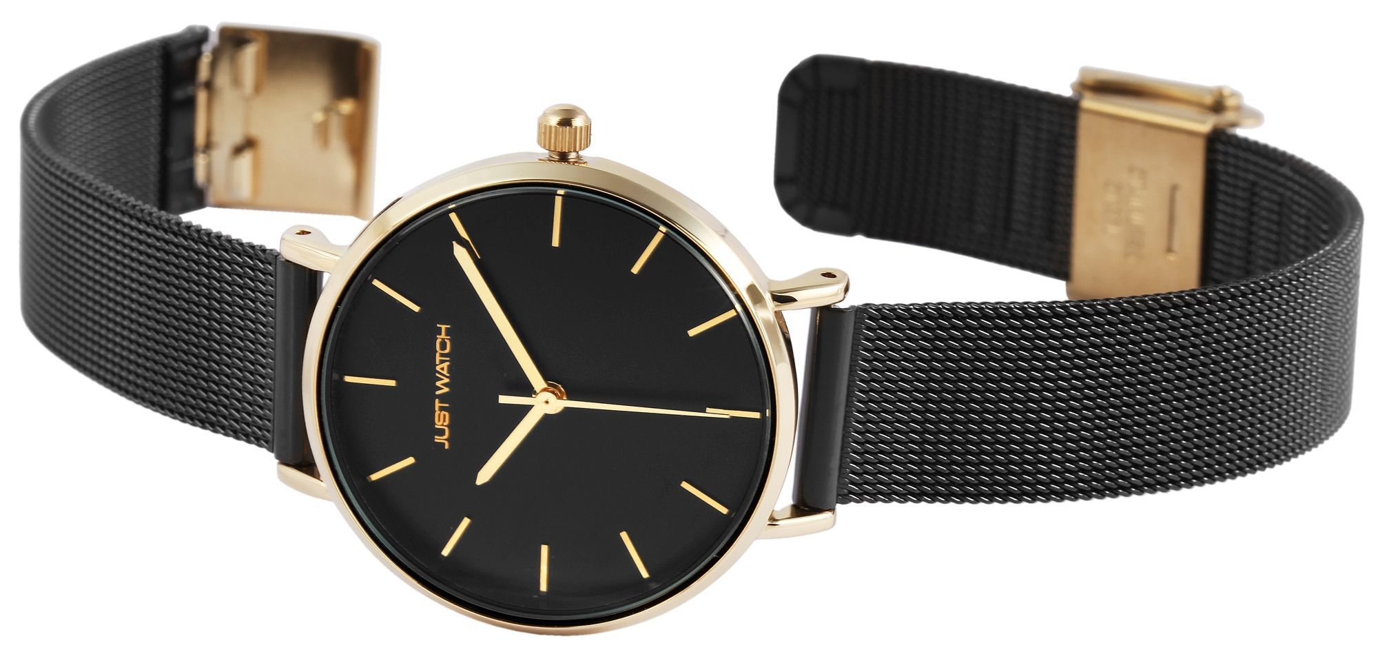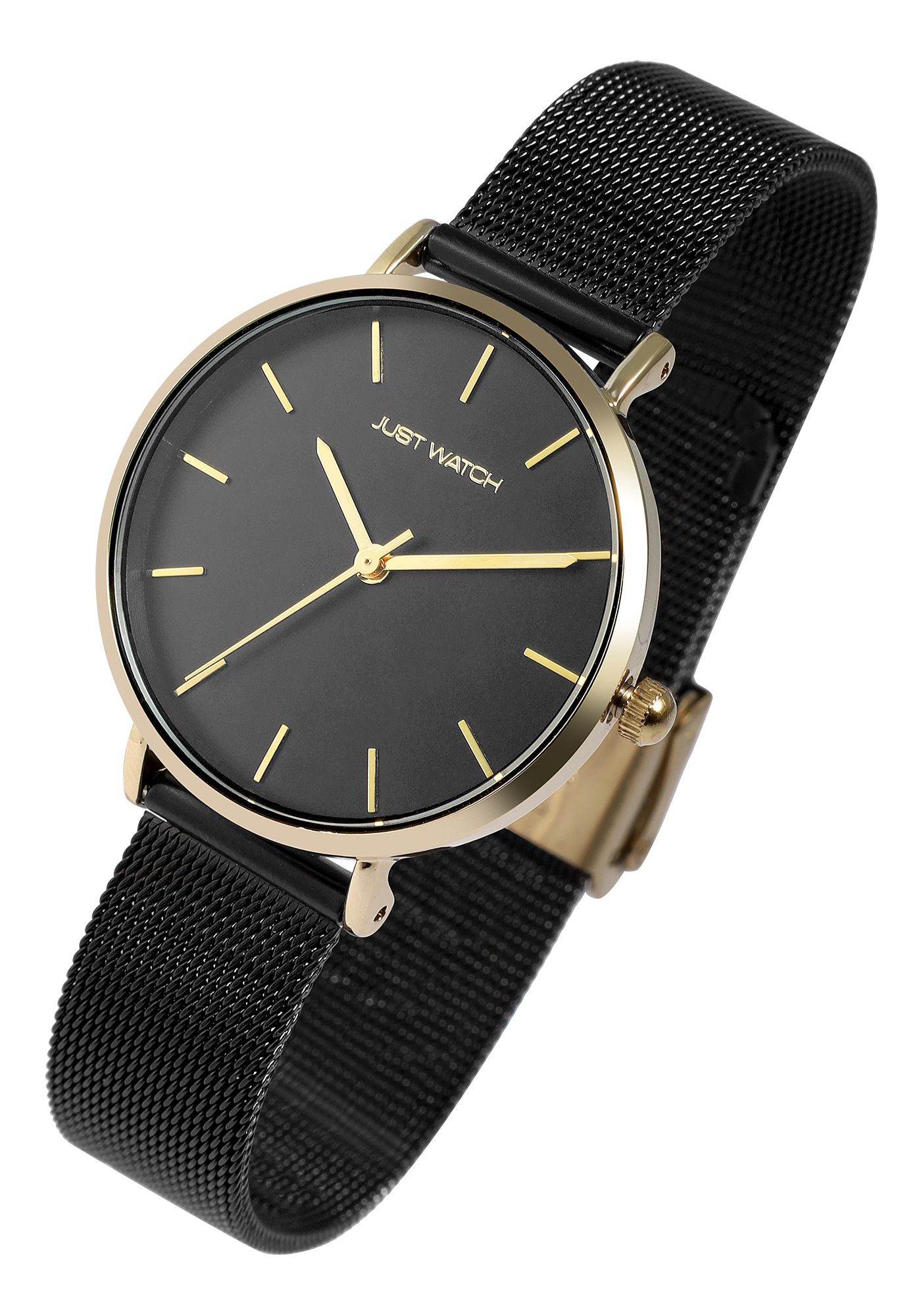 Produktinformationen "Just Watch Damenarmbanduhr, Milanesearmband, schwarz/goldfarben"