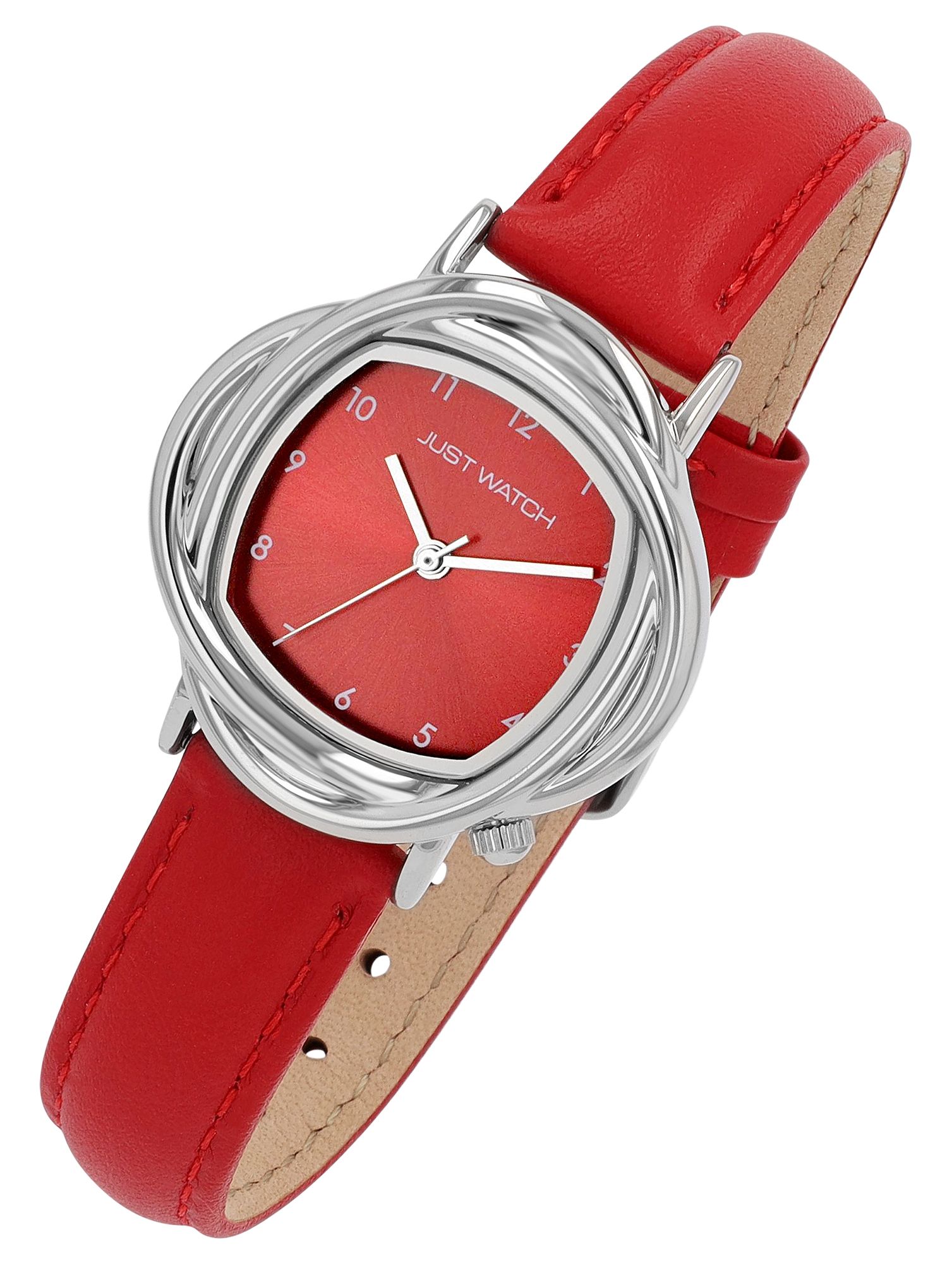 Produktinformationen "Just Watch Damenuhr "Antoni" mit Lederband, kurviges Gehäuse, rot"