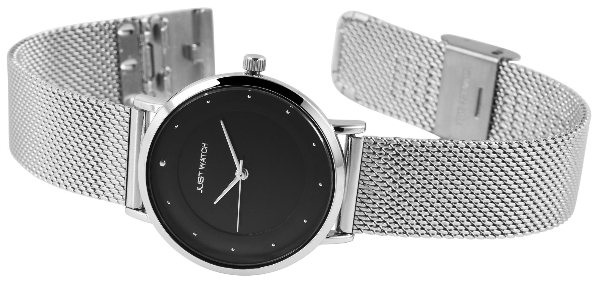 Produktinformationen "Just Watch Damenuhr, Milanesearmband, silberfarben/schwarz"