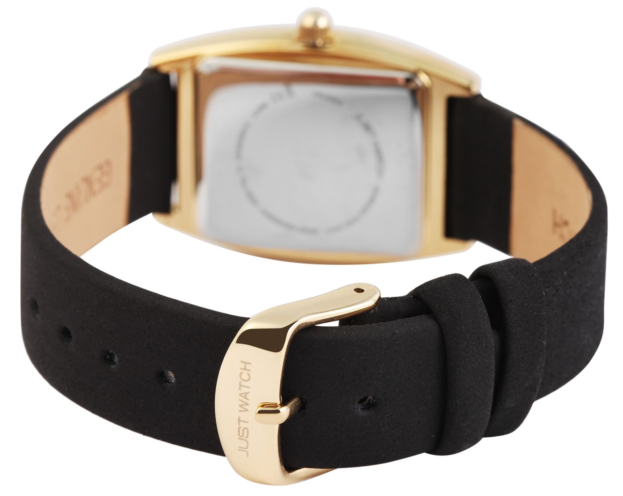 Produktinformationen "Just Watch Damenuhr mit Echtlederarmband, Tonneau, schwarz/ goldfarben"