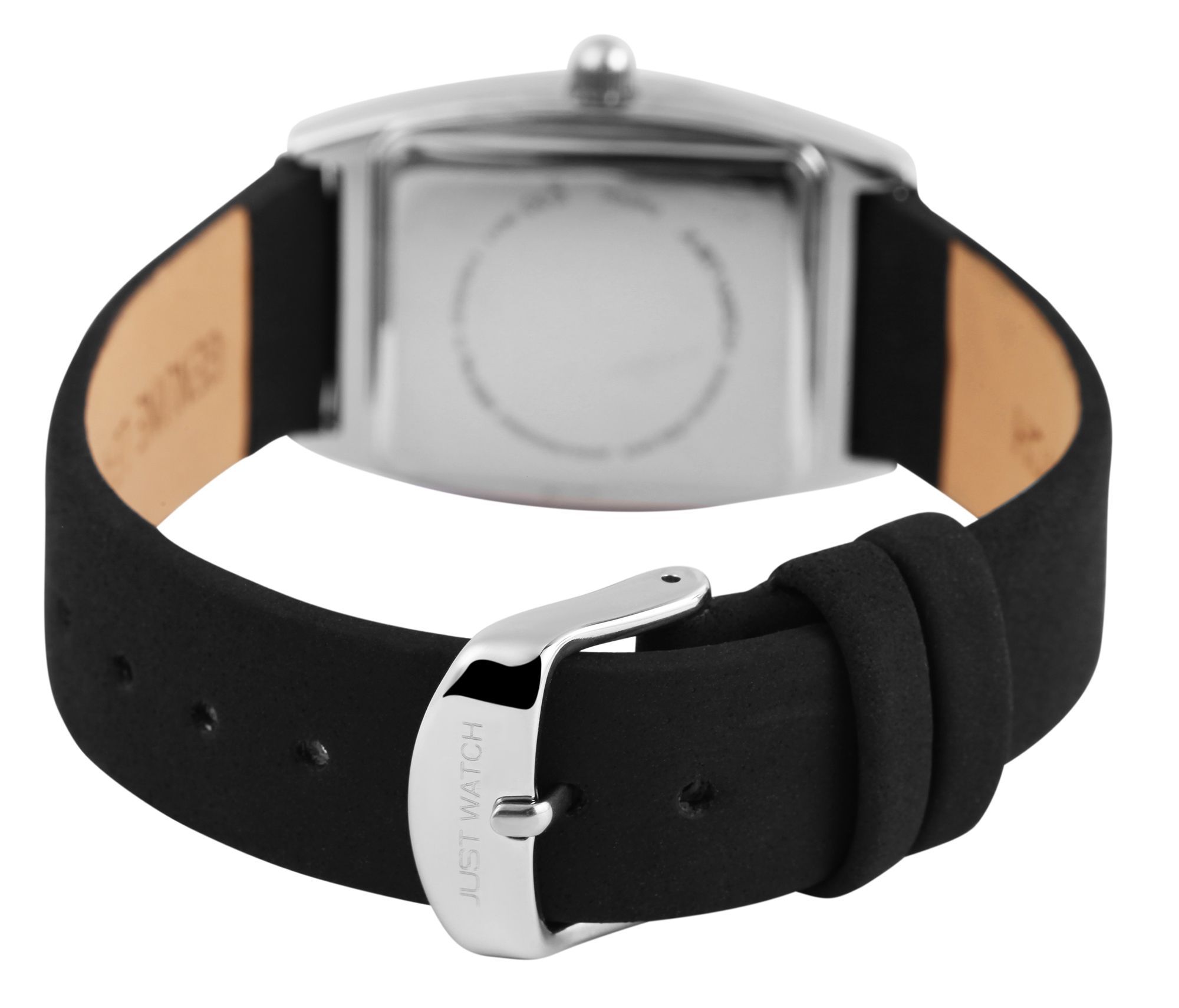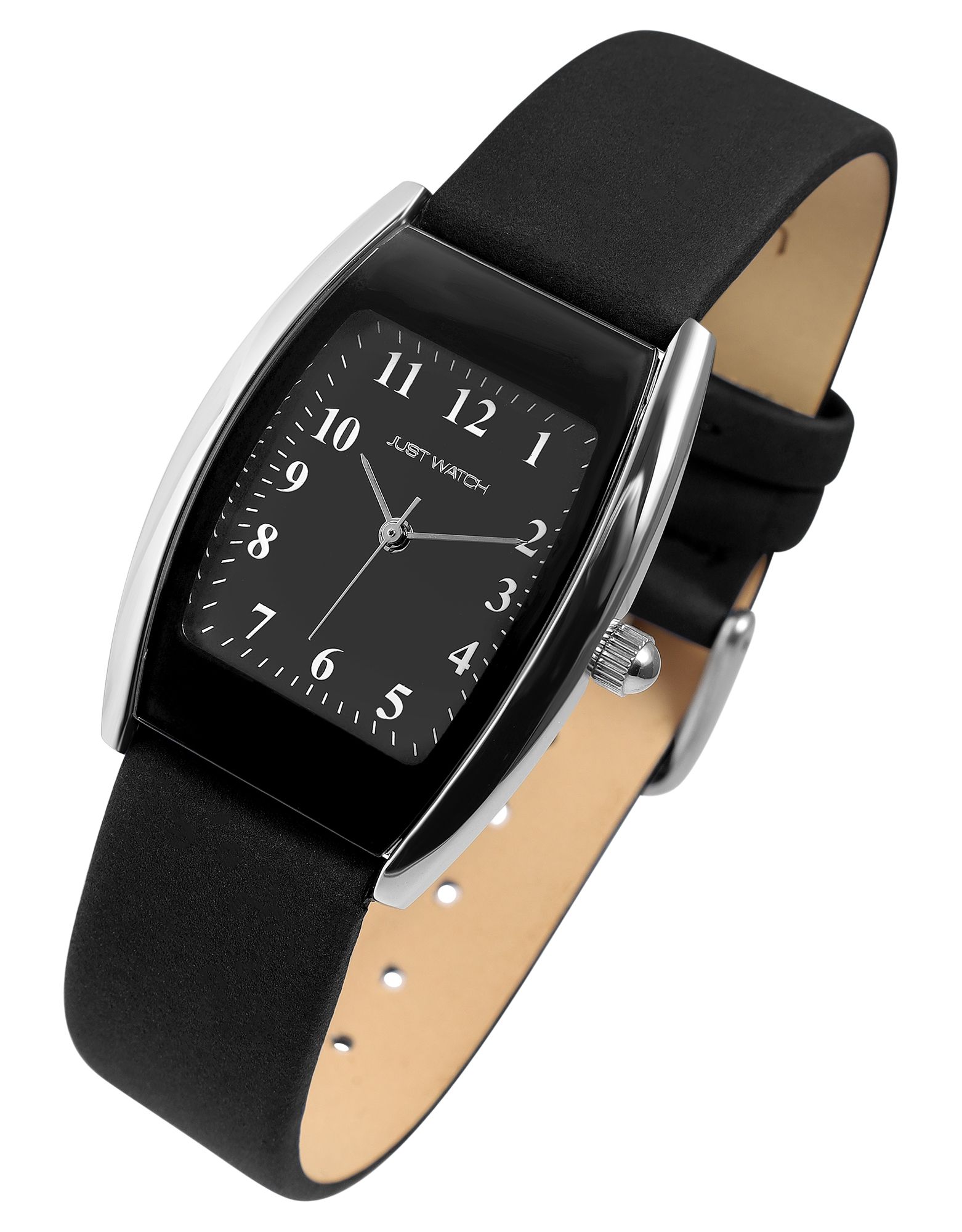 Produktinformationen "Just Watch Damenuhr mit Echtlederarmband, Tonneau, schwarz/silberfarben"