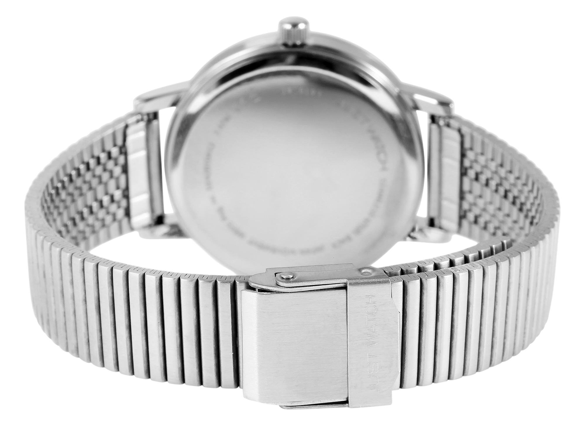 Die analoge 3-Zeiger Damenarmbanduhr der Marke Just Wach verfügt über ein hochwertiges Quarzuhrwerk. Das Edelstahlarmband hat eine Anstoßbreite von 16 mm. Öffnen und schließen lässt sich die Armbanduhr mit einem Edelstahl-Hakenverschluss inkl. Sicherheitsbügel. Die Gesamtlänge der Uhr beträgt 22 cm. Das Metallgehäuse mit Mineralglas hat eine Abmessung von 34 mm im Durchmesser und eine Gehäusehöhe von 9 mm. Der Gehäuseboden ist aus Edelstahl gefertigt und die Uhr hat eine Wasserdichtigkeit von 3 bar. Die Zeiger und indexe haben dieselbe Farbe wie das Gehäuse und komplettieren so das harmonische Gesamtbild der Uhr. Als Punktindexe dienen funkelnde Simili steinchen, die sich gekonnt in Szene setzen. Als Zubehör zu Ihrem Produkt erhalten Sie eine Garantiekarte und eine Originalbox der Marke Just Watch.