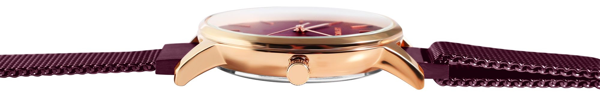 Die analoge 3-Zeiger Damenarmbanduhr der Marke Just Wach verfügt über ein hochwertiges Quarzuhrwerk. Das rote Milanesearmband ist aus Edelstahl gefertigt und hat eine Anstoßbreite von 14 mm. Öffnen und schließen lässt sich die moderne Armbanduhr mit einem praktischen Magnetverschluss. Die Gesamtlänge der Uhr beträgt 26 cm. Das roségoldfarbene Metallgehäuse mit Mineralglas hat eine Abmessung von 32 mm im Durchmesser und eine Gehäusehöhe von 9 mm. Der Gehäuseboden ist aus Edelstahl gefertigt und die Uhr hat eine Wasserdichtigkeit von 3 bar. Das Zifferblatt passt sich der Farbe des Armbandes an und rundet dadurch harmonisch das Gesamtbild ab. Die Zeiger und Indexe haben dieselbe Farbe wie das Gehäuse. Als Zubehör zu Ihrem Produkt erhalten Sie eine Garantiekarte und eine Originalbox der Marke Just Watch.