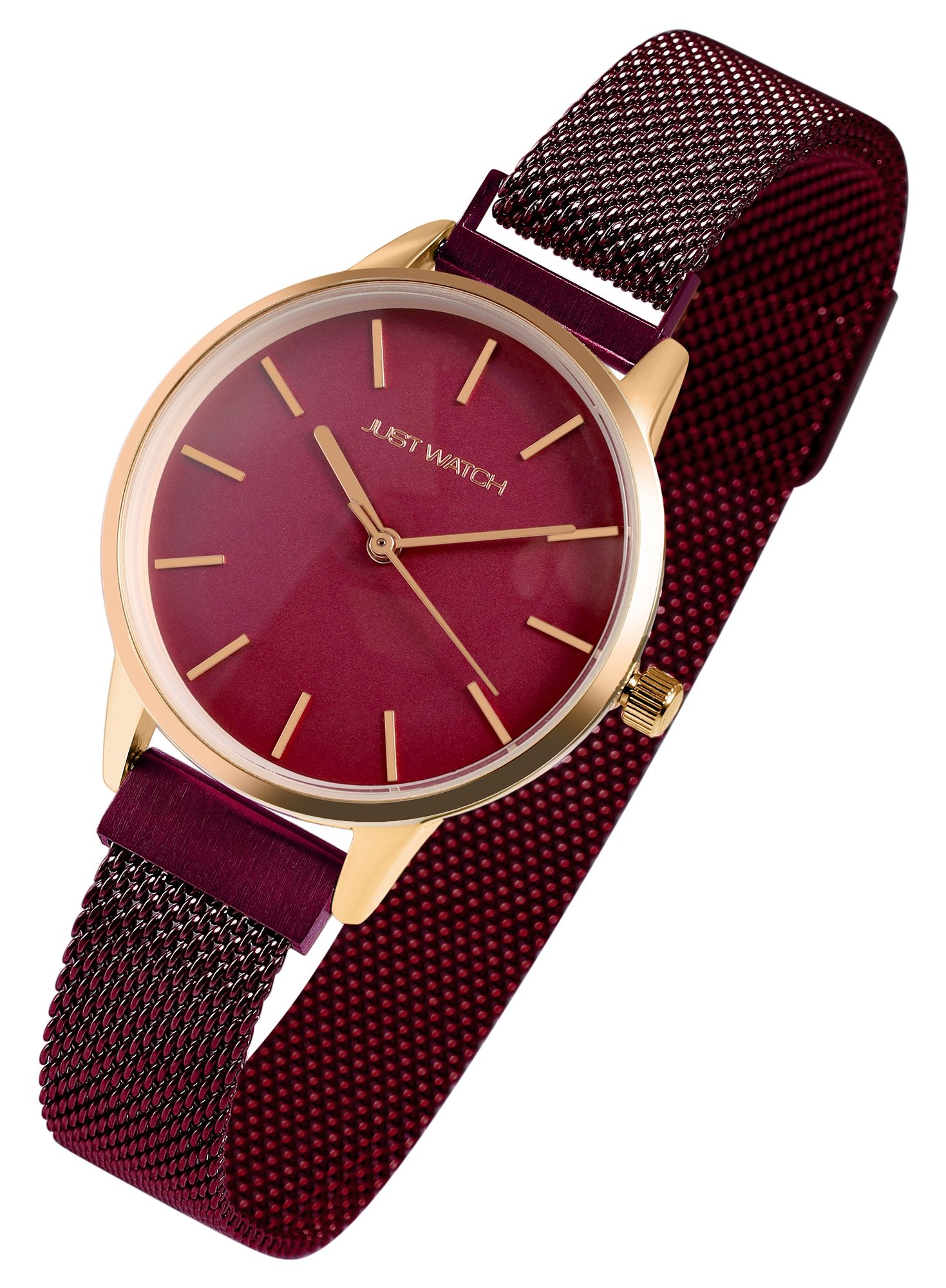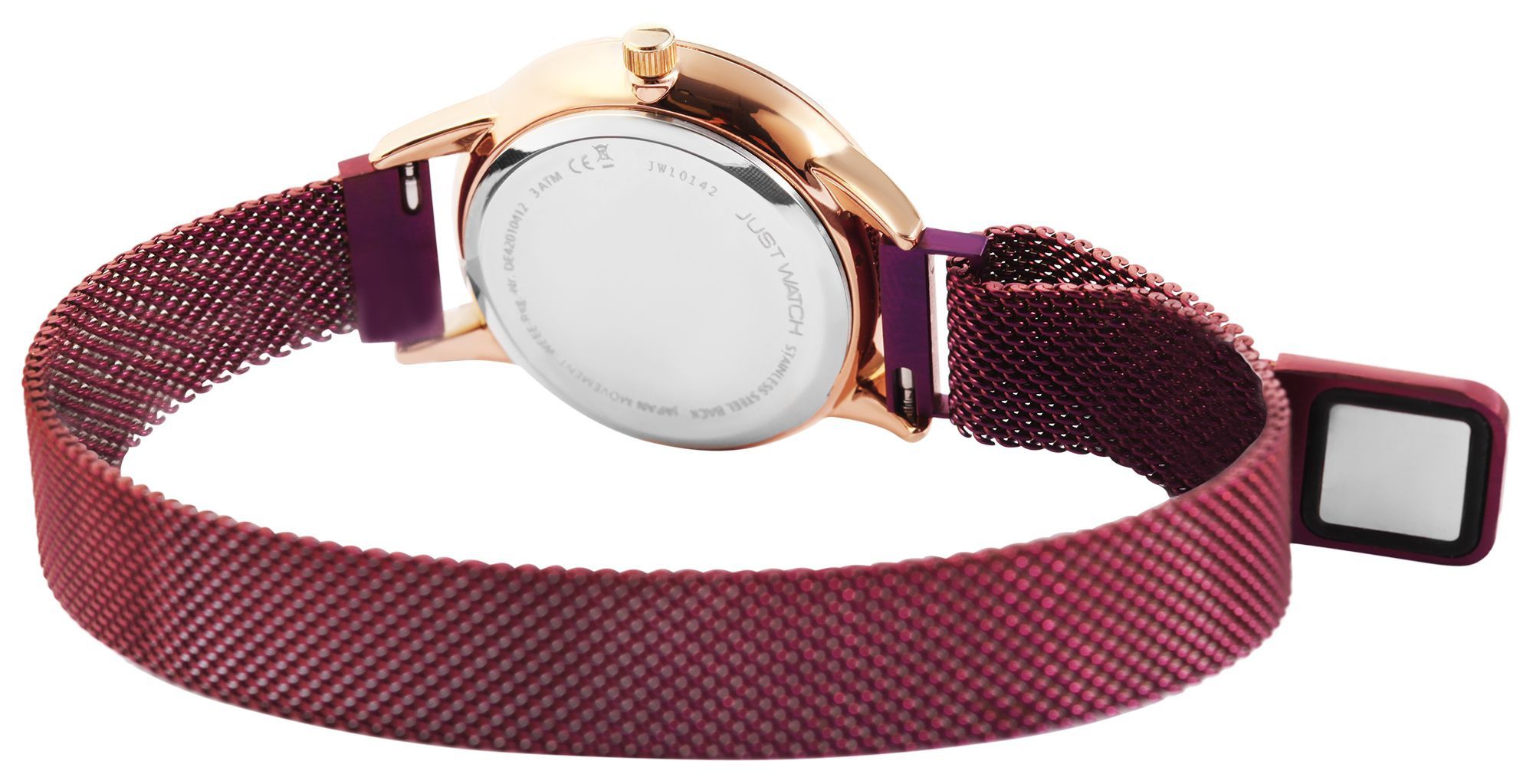 Produktinformationen "Just Watch Damenuhr mit Milanesearmband, Magnetverschluss, rot/roségoldfarben"