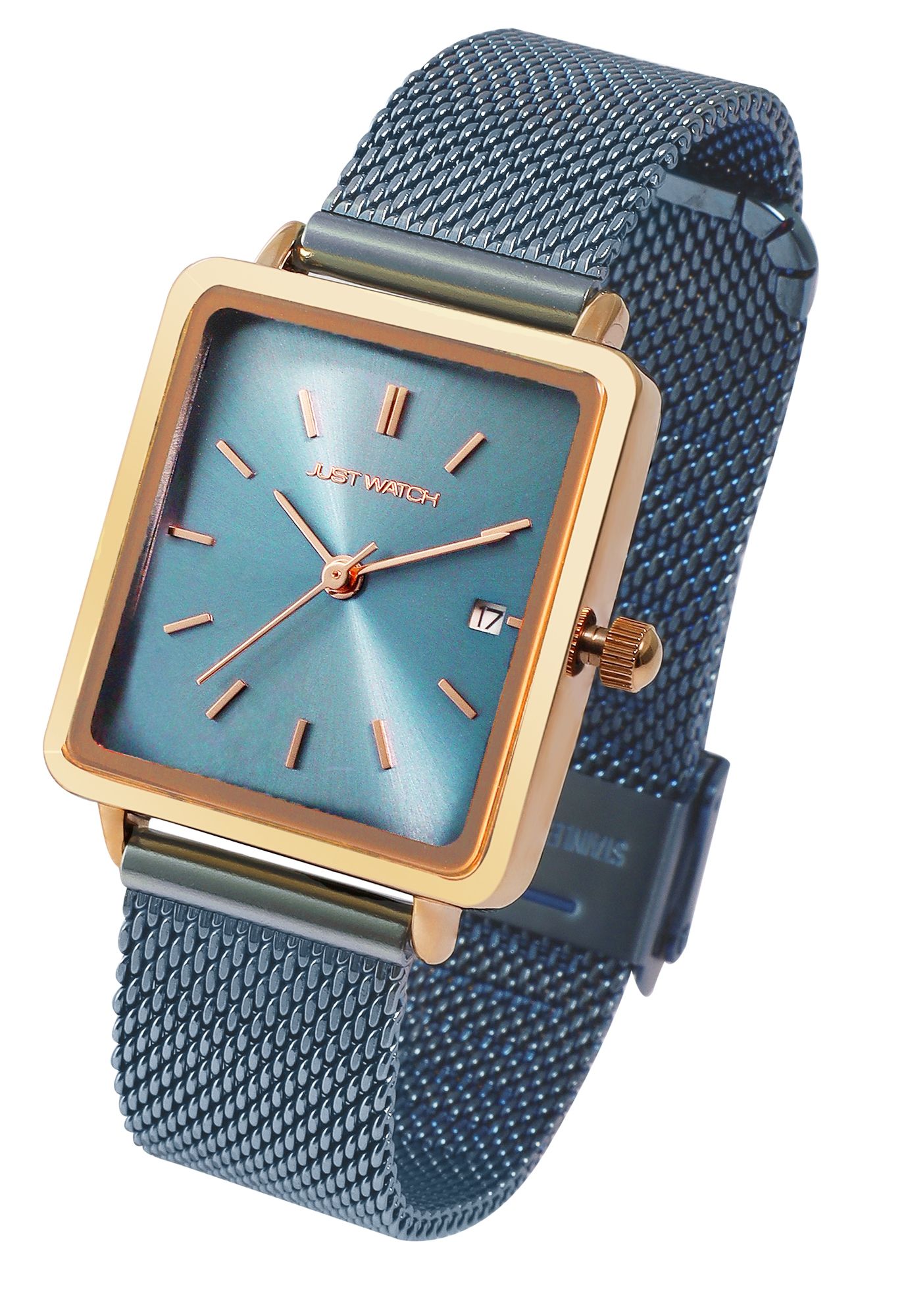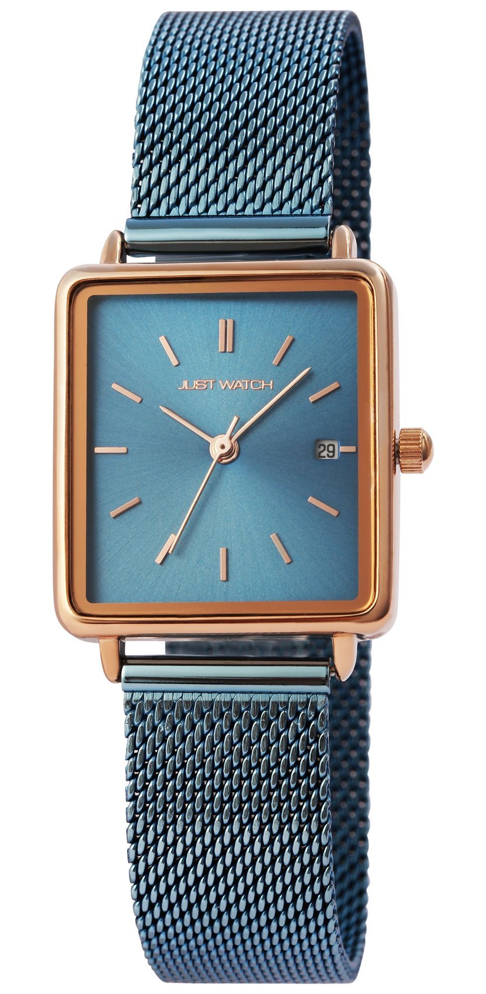 Produktinformationen "Just Watch Damenuhr mit Milanesearmband, hellblau/roségoldfarben"