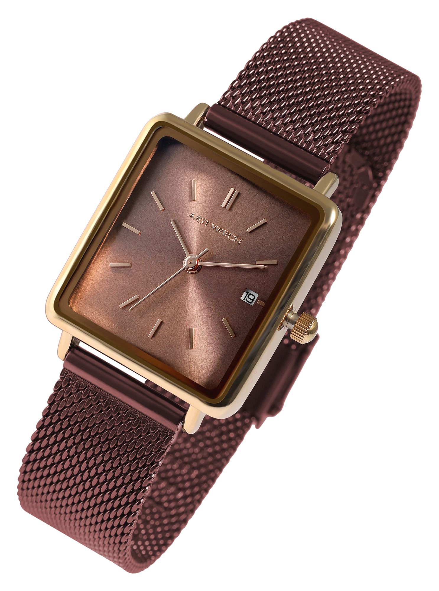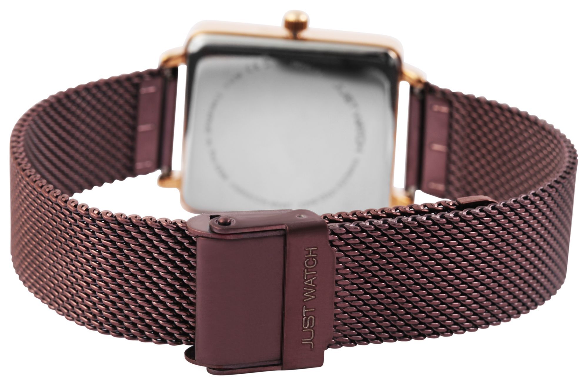 Produktinformationen "Just Watch Damenuhr mit Milanesearmband, dunkelrot/roségoldfarben"
