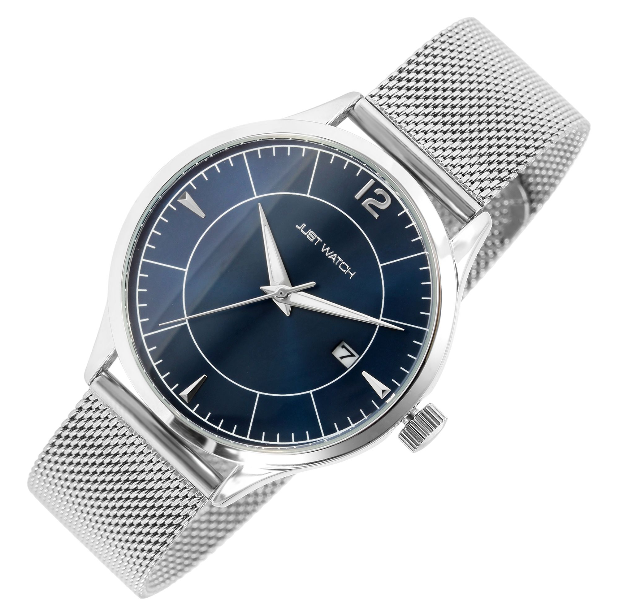 Produktinformationen "Just Watch Herrenuhr, Milanaisearmband, Edelstahl, silberfarben/blau"