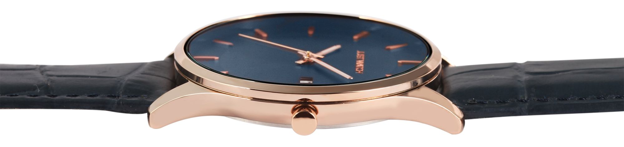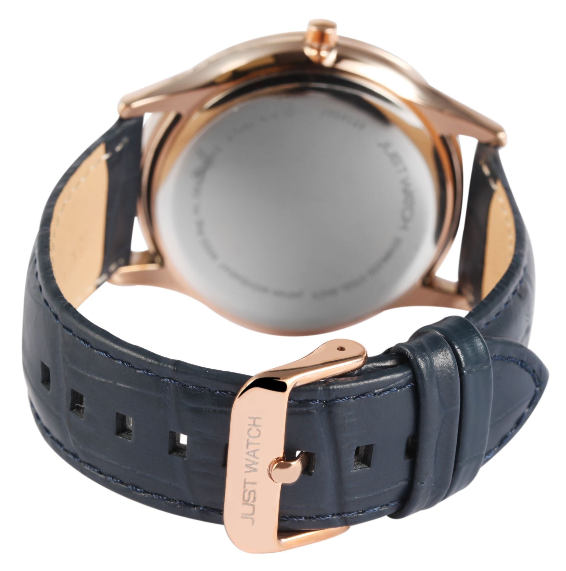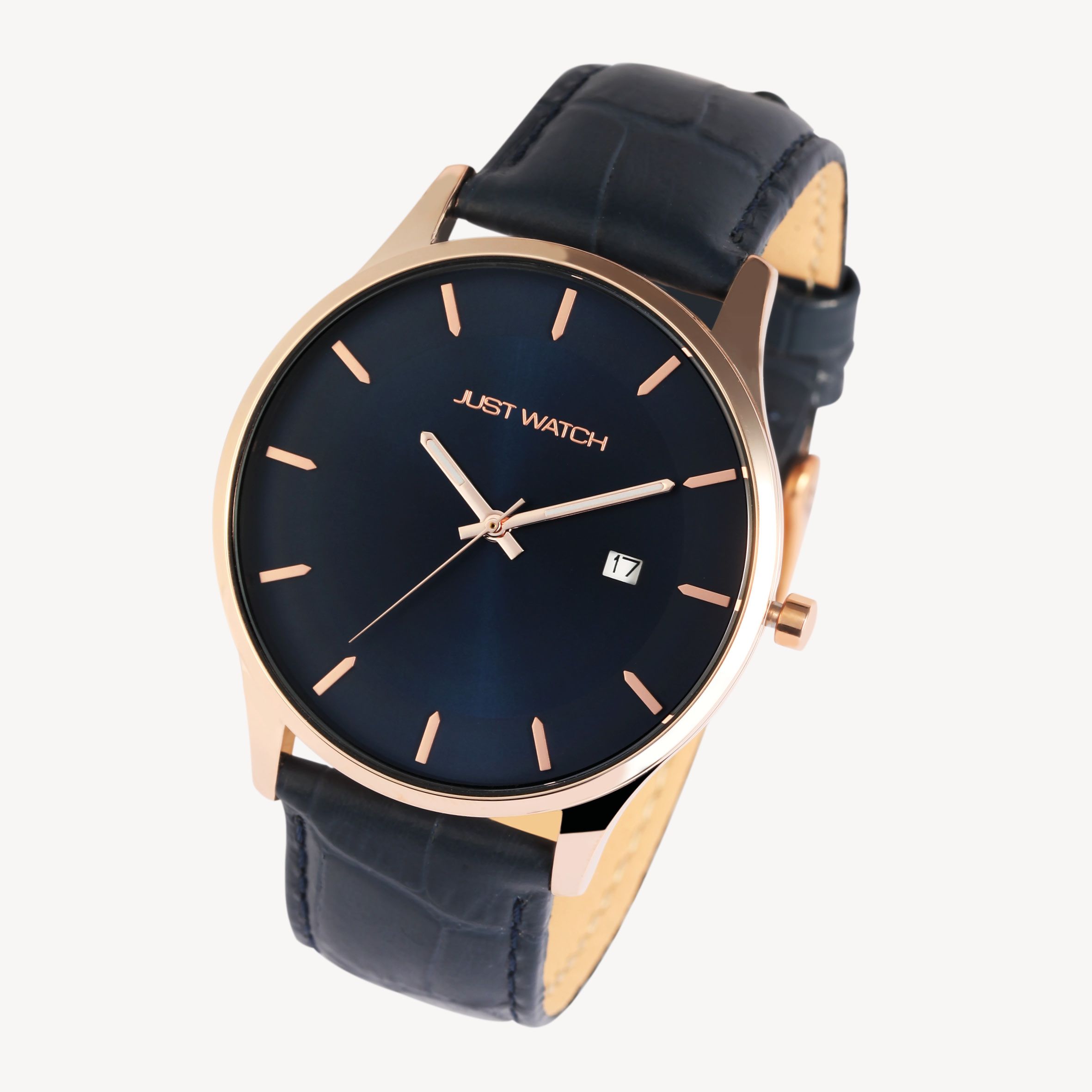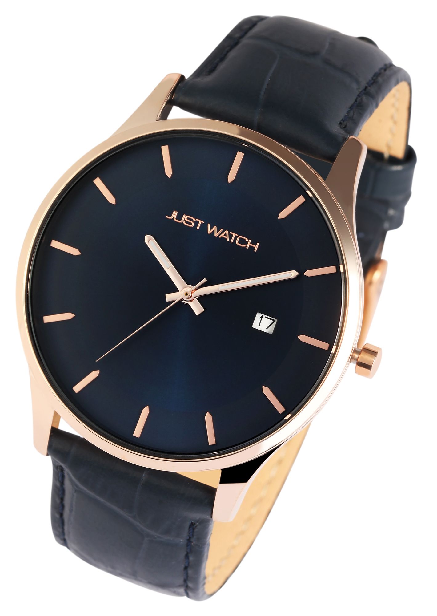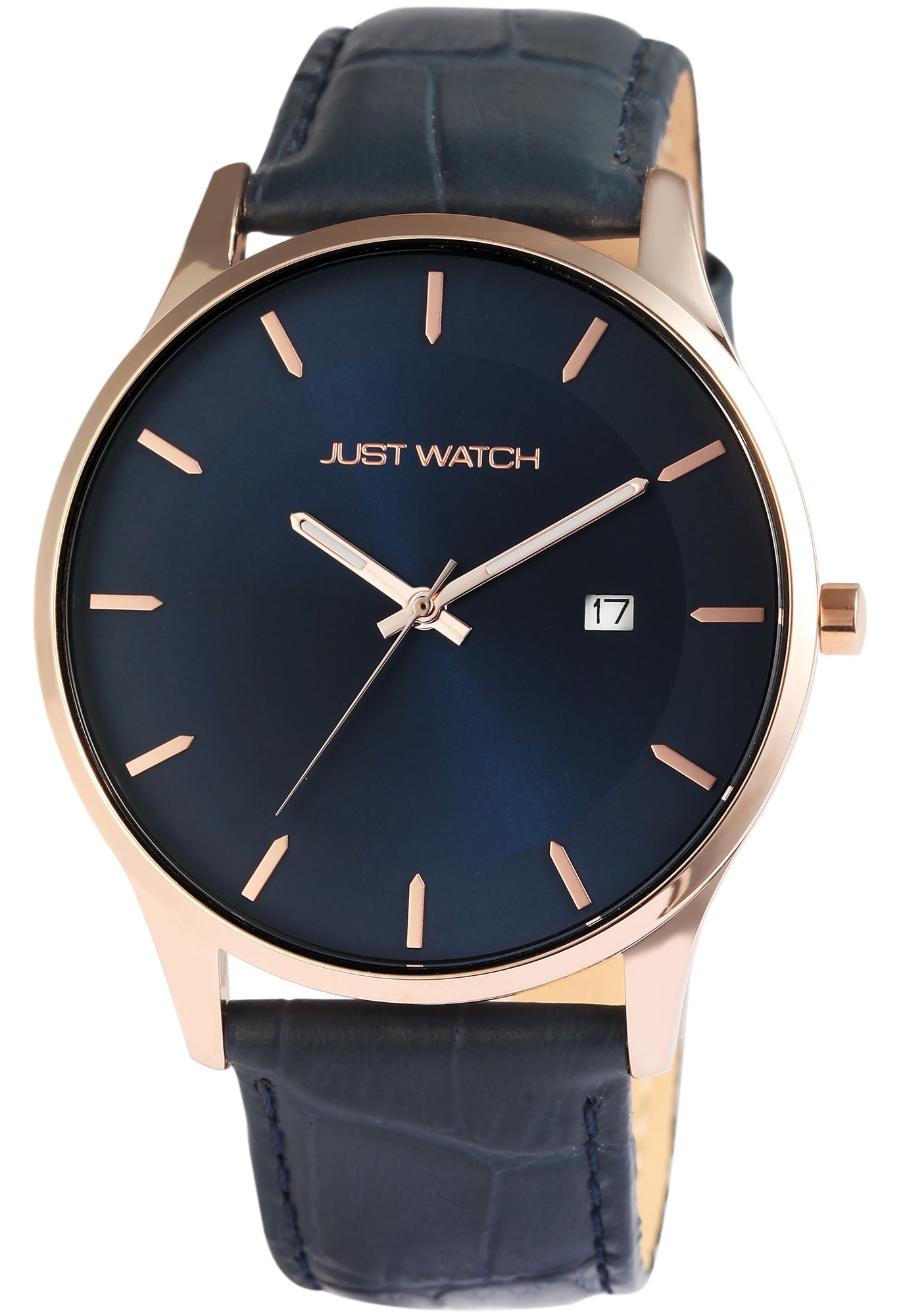 Produktinformationen "Just Watch Herrenuhr mit Echtlederarmband, Datumsanzeige, blau/roségoldfarben"