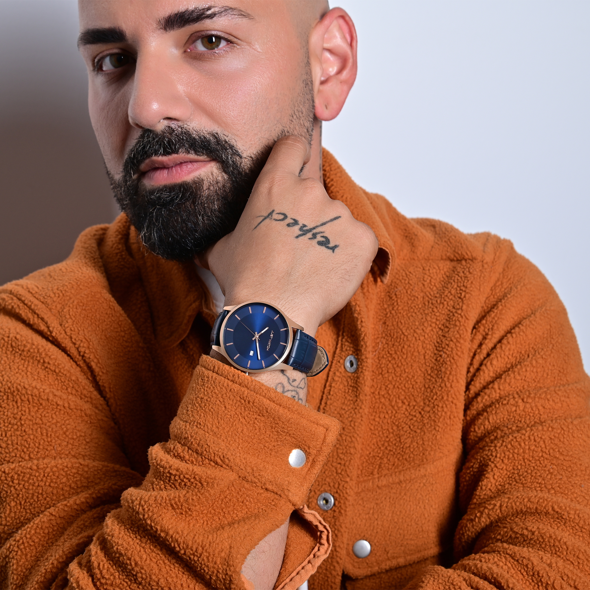 Die analoge 3-Zeiger Herrenarmbanduhr der Marke Just Watch verfügt über ein hochwertiges Quarzuhrwerk. Das Echtlederarmband mit Prägung ist am Anstoß 22 mm breit und lässt sich mit einer Edelstahldornschließe öffnen und schließen. Die Gesamtlänge der Uhr beträgt 25,5 cm. Das Metallgehäuse mit Mineralglas hat eine Abmessung von 43 mm im Durchmesser und eine Gehäusehöhe von 8 mm. Der Gehäuseboden ist aus Edelstahl gefertigt und die Uhr hat eine Wasserdichtigkeit von 3 bar. Das Zifferblatt ist schlicht und übersichtlich gestaltet. Die Zeiger und Indexe passen sich farblich dem Gehäuse an und runden damit das Gesamtbild harmonisch ab. Eine weitere Besonderheit ist die Datumsanzeige auf drei Uhr und die mit Superluminova beschichteten Zeiger, die das Ablesen der Uhrzeit auch im Dunkeln ermöglichen. Als Zubehör zu Ihrem Produkt erhalten Sie eine Garantiekarte und eine Originalbox der Marke Just Watch.