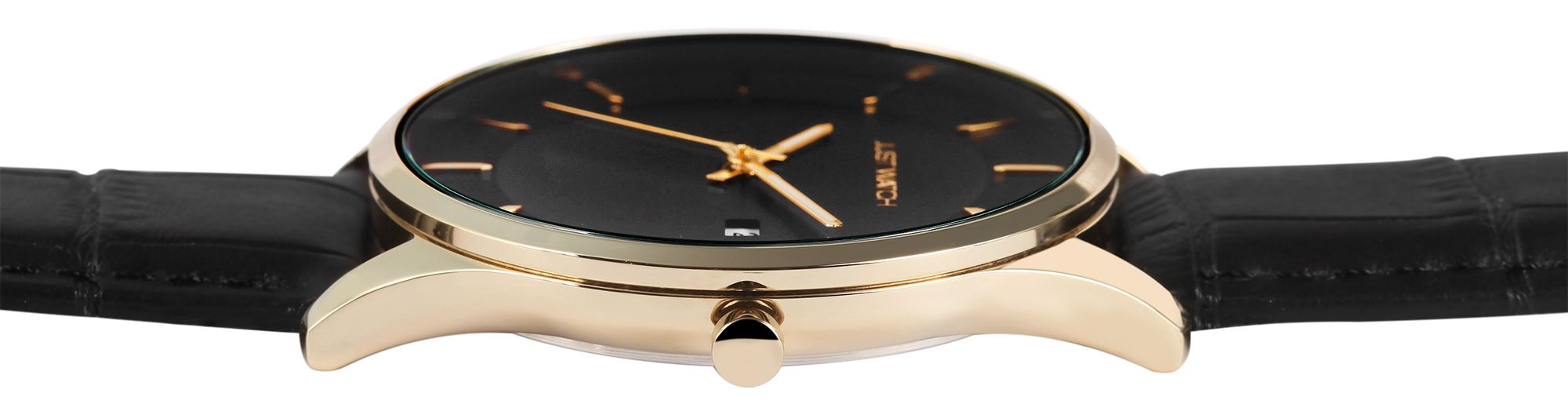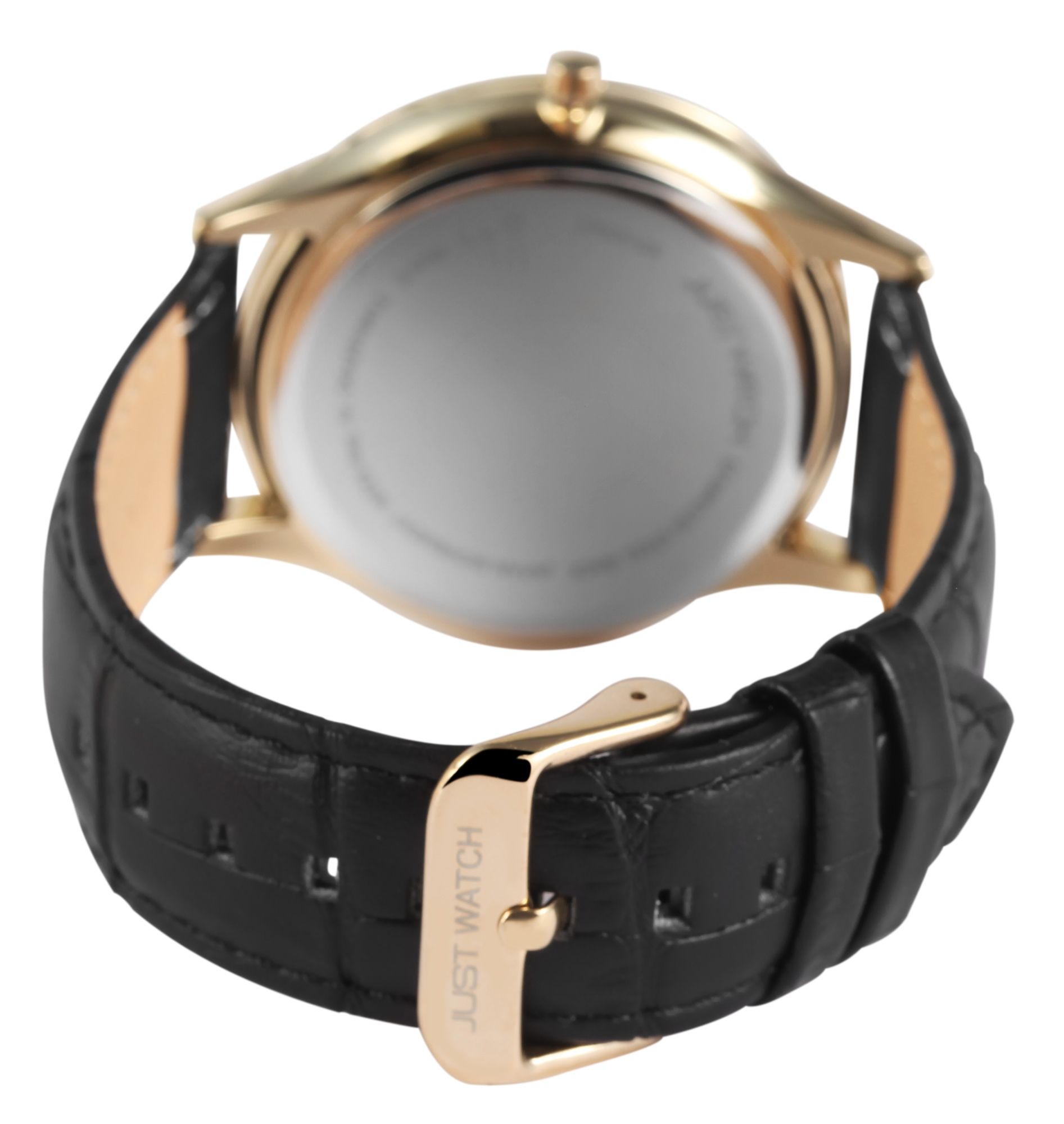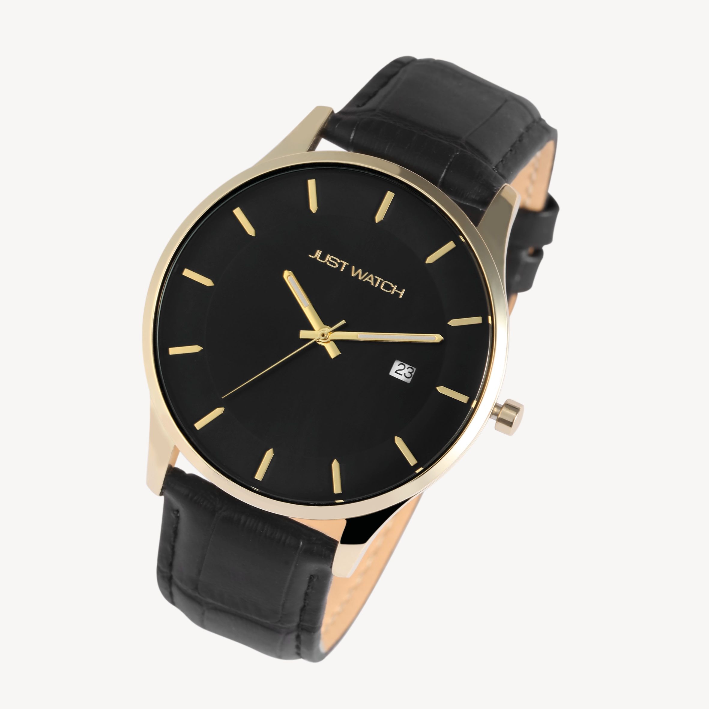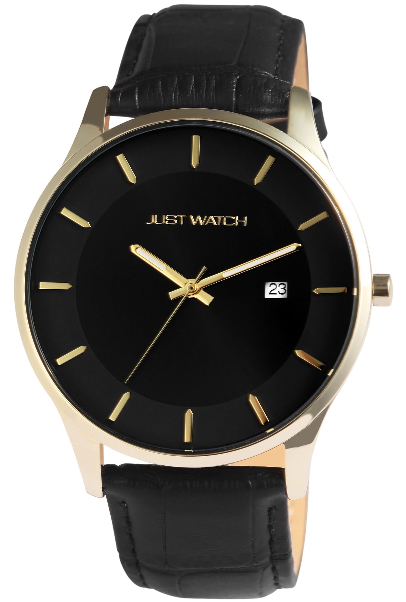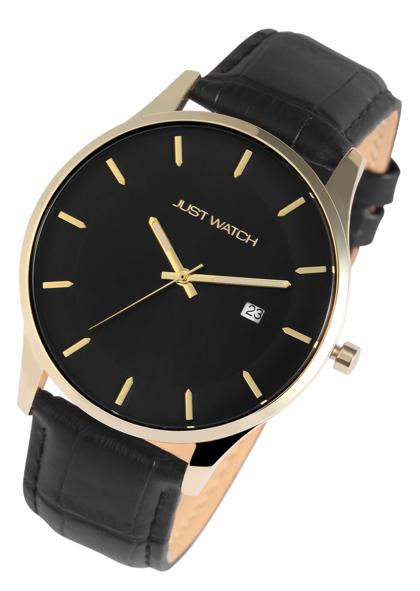 Produktinformationen "Just Watch Herrenuhr mit Echtlederarmband, Datumsanzeige, schwarz/goldfarben"