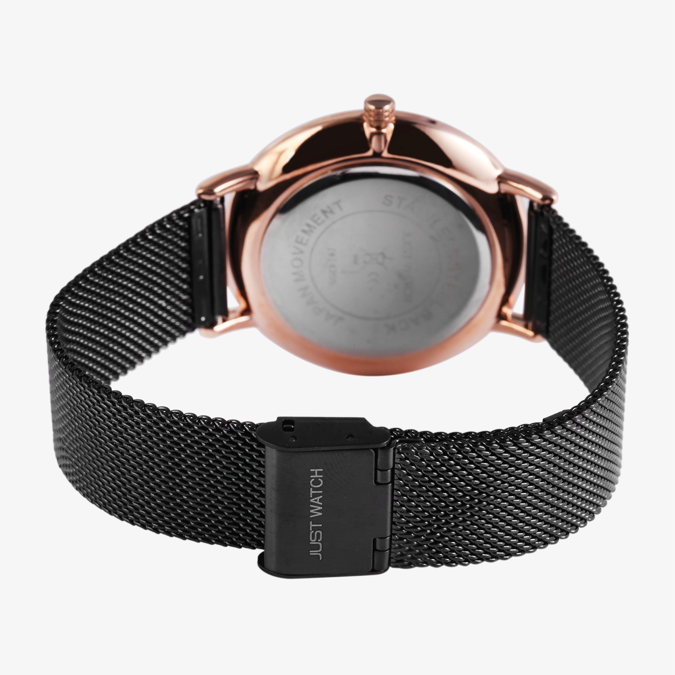 Die analogen 2-Zeiger Unisexuhren der Marke Just Watch verfügen über ein hochwertiges Quarzuhrwerk. Die hochwertigen Leder- und Milanesearmbänder haben eine Anstoßbreite von 20 mm und lassen sich mit einem leicht zu bedienenden Verschluss öffnen und schließen. Die Lederbänder werden mit einer Dornschließe und die Milanesearmbänder werden mit einem Hakenverschluss aus Edelstahl geöffnet und geschlossen. Die Gesamtlänge der Lederbänder beträgt 20 cm und die der Milanesebänder 23,5 cm. Das Metallgehäuse mit Mineralglas hat eine Abmessung von 41 mm im Durchmesser und einer Gehäusehöhe von 7 mm. Der Gehäuseboden ist, wie auch die Milanesebänder aus Edelstahl gefertigt. Zusätzlich hat die Uhr eine Wasserdichtigkeit von 3 bar. Das Zifferblatt ist schlicht gehalten und die Zeiger und Indexe passen sich optisch gut dem Gesamtbild der Uhr an. Der Zeitmesser überzeugt mit schlichter Eleganz und ist vielseitig kombinierbar.