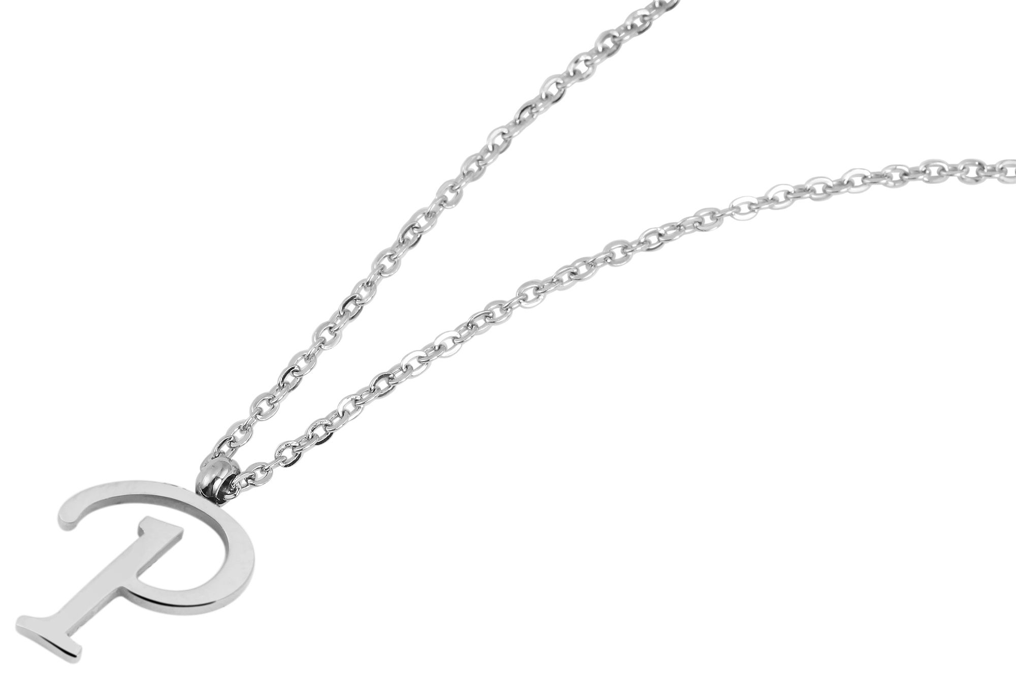Die silberfarbene Halskette der Marke Akzent ist aus Edelstahl im Ankermuster gefertigt. An der Kette ist ein Anhänger in Form eines Buchstabens angebracht. Dieser hat die Länge von 14 mm, eine Breite von 13 mm und eine Materialstärke von 1,5 mm. Öffnen und schließen lässt sich die moderne Kette mit einem Karabinerhaken, der ebenfalls aus Edelstahl gefertigt ist. Die Ankerkette ist 43 + 5 cm lang. Mit der 5 cm langen Verlängerungskette, kann die Länge passend zu jedem Outfit variiert werden.