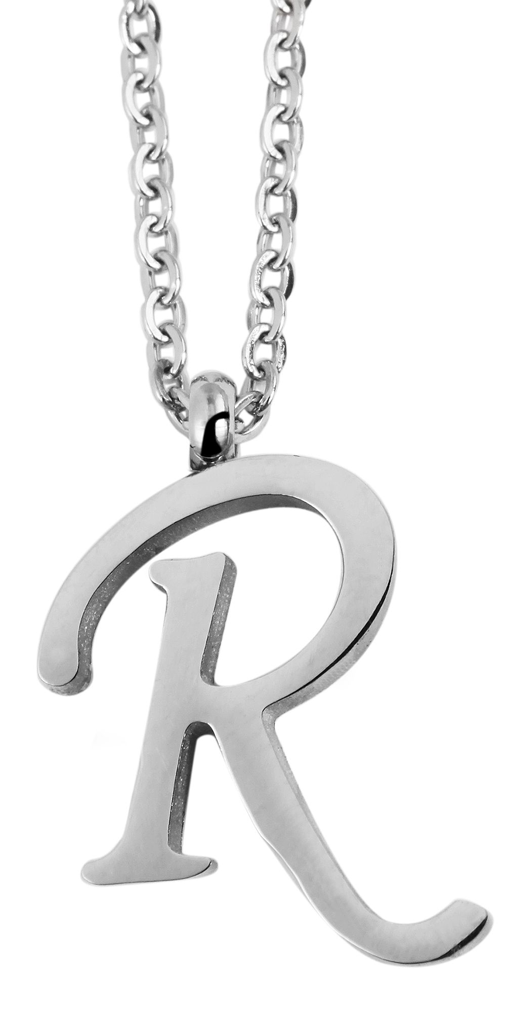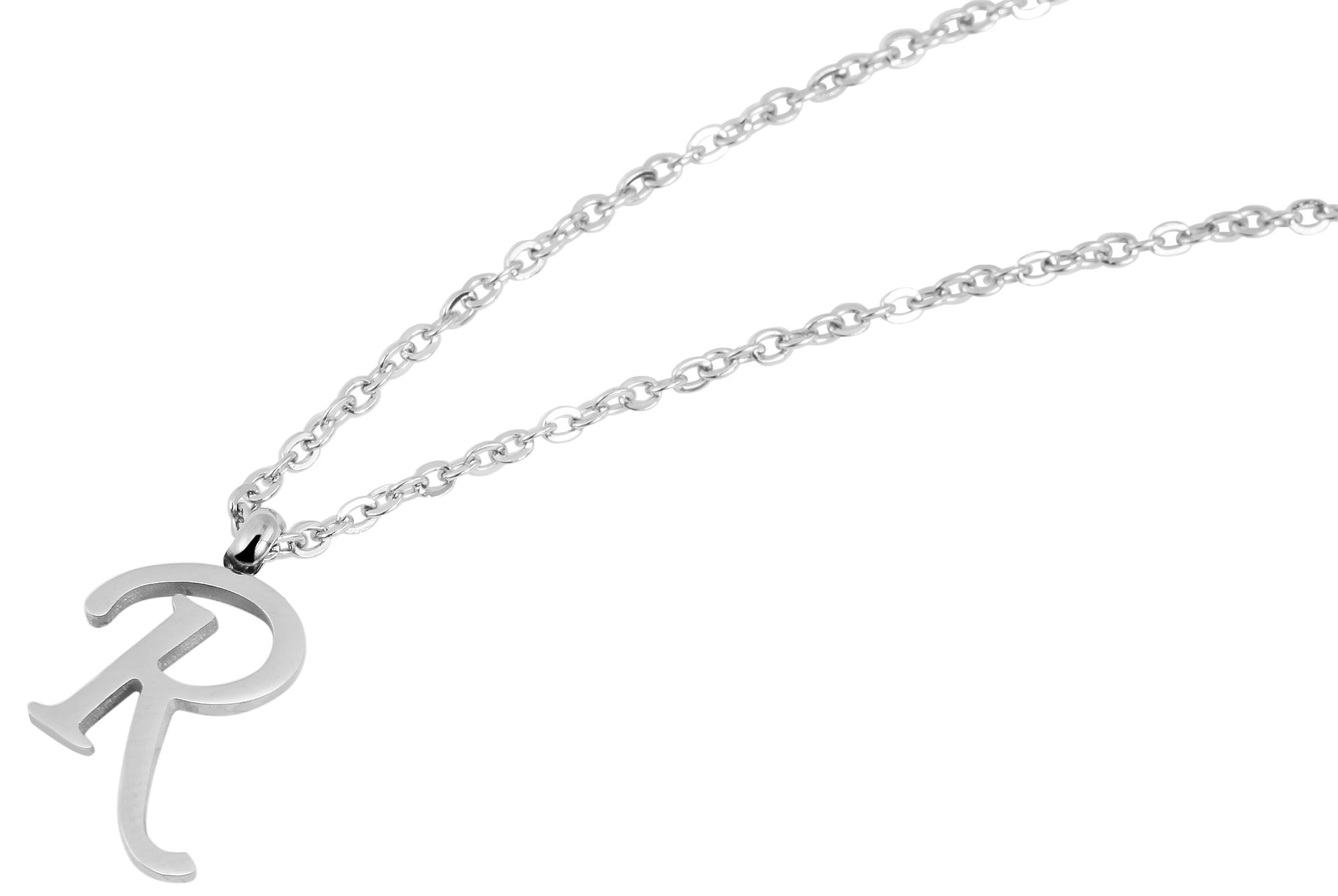 Produktinformationen ""Kiah", Akzent Ankerkette Edelstahl, silberfarben, Buchstabenanhänger R, 43 cm"