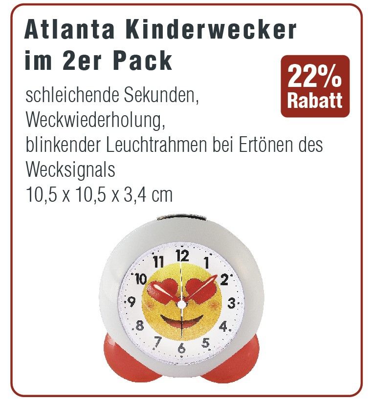 Unser Atlanta Kinderwecker ist nicht nur ein zuverlässiger Zeitmesser, sondern auch ein begeisterndes und unterhaltsames Accessoire für jedes Kinderzimmer. Mit Maßen von 10,5 x 10,5 x 3,4 cm ist dieser Wecker kompakt und passt perfekt auf jeden Nachttisch oder Schreibtisch. Das einzigartige Zifferblatt ist mit einem Emoji mit Herzaugen verziert, das Kindern ein Lächeln ins Gesicht zaubert. Dieses verspielte Design macht den Wecker zu einem echten Blickfang und begeistert Kinder jeden Alters. Neben seinem charmanten Aussehen bietet der Kinderwecker auch eine schleichende Sekunde, was bedeutet, dass die Zeiger geräuschlos und ohne störendes Ticken voranschreiten. Die Repetitionsfunktion stellt sicher, dass das Kind niemals zu spät zu seinen Aktivitäten kommt.