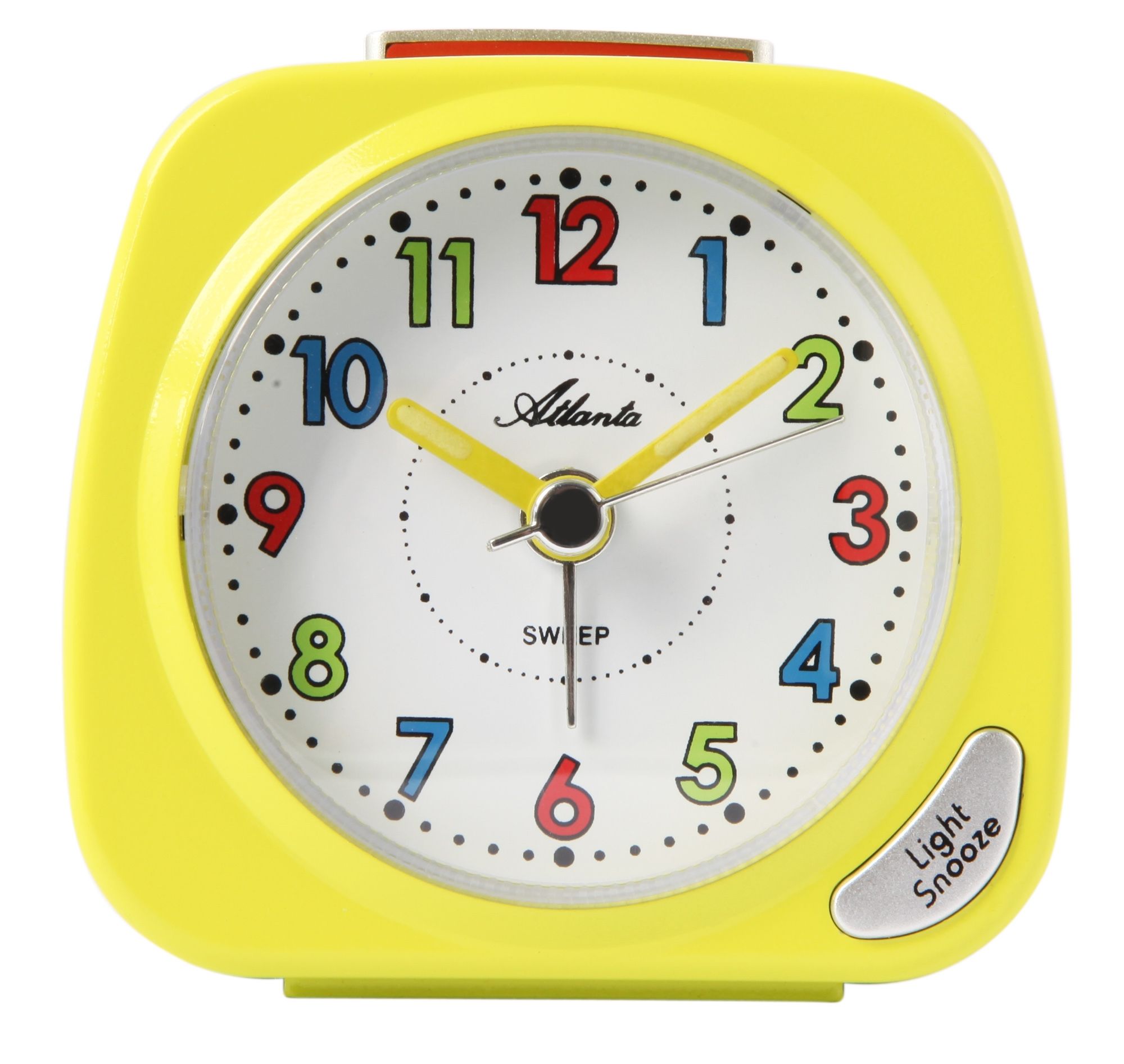 Produktinformationen "Kinderwecker, Quartz, schleichende Sekunde, Weckwiederholung, ansteigendes Wecksignal, Licht"