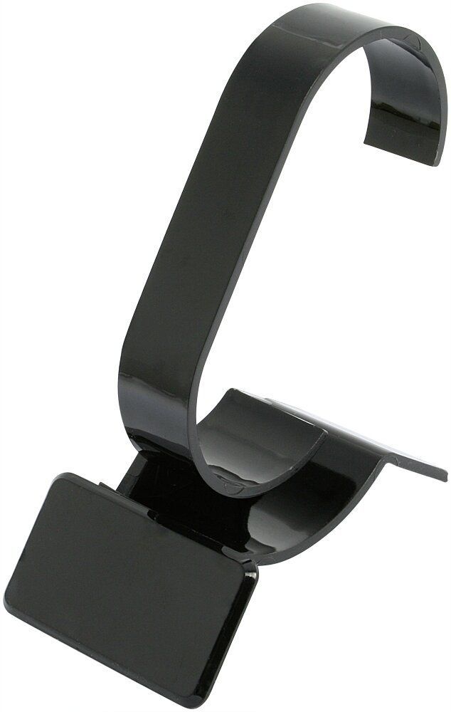 Auf den kleinen Uhrenständer aus Kunststoff lassen sich alle Arten von Armbanduhren spannen, um diese zum Beispiel auf einem Display zu präsentieren. Die Uhren lassen sich ganz einfach über die Spange ziehen und der leichten Winkels des Uhrenständers sorgt für eine perfekte Präsentation der Ausstellungsstücke. Erhältlich sind die Uhrenständer in Transparent, Schwarz oder Weiß. Die Maße der Uhrenspange an sich betragen 79 mm in der Länge, 15 mm in der Breite und 42 mm in der Tiefe. Der gesamte Uhrenständer präsentiert sich mit den Maßen: 11 x 4,5 x 7 cm.