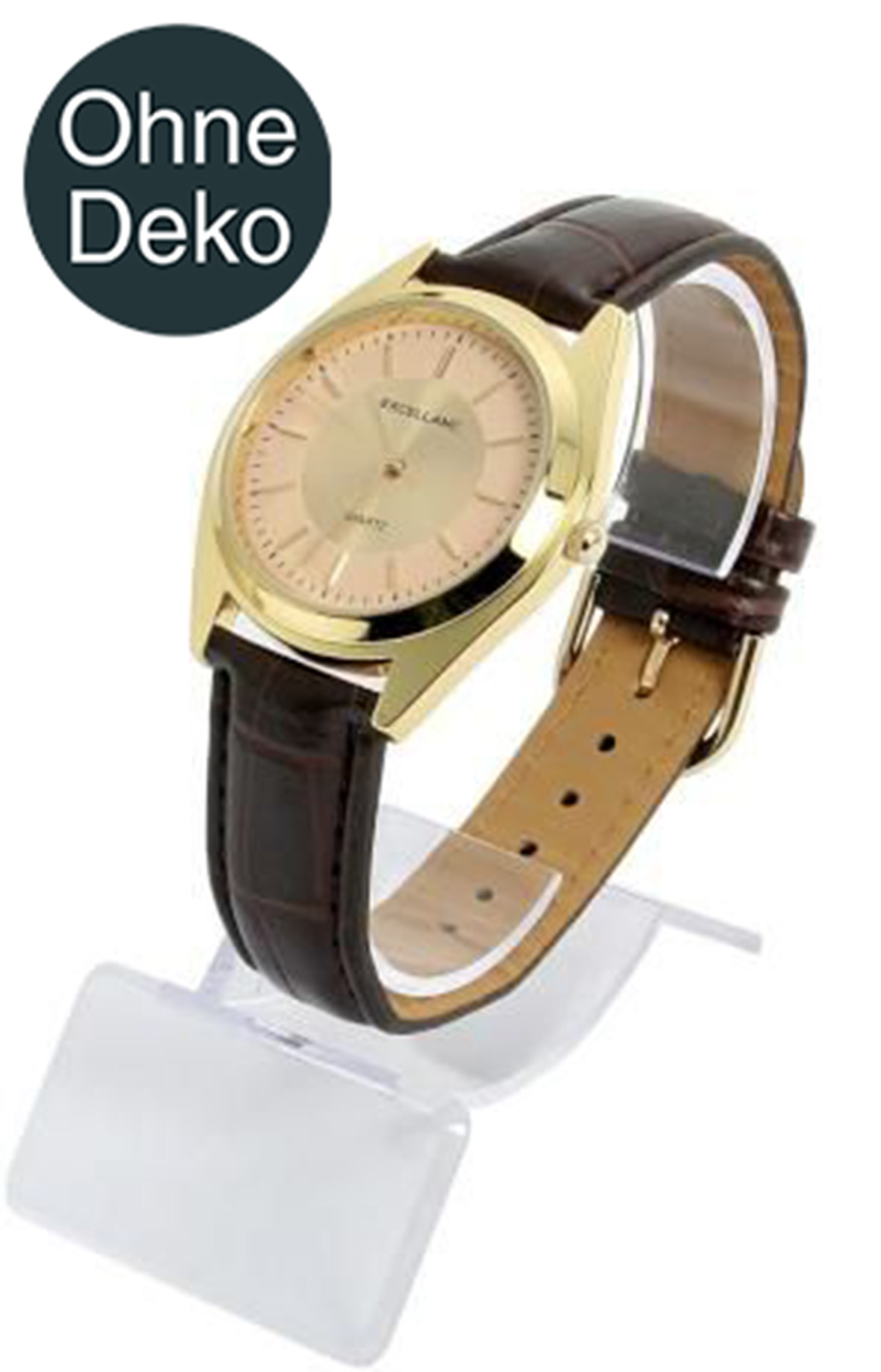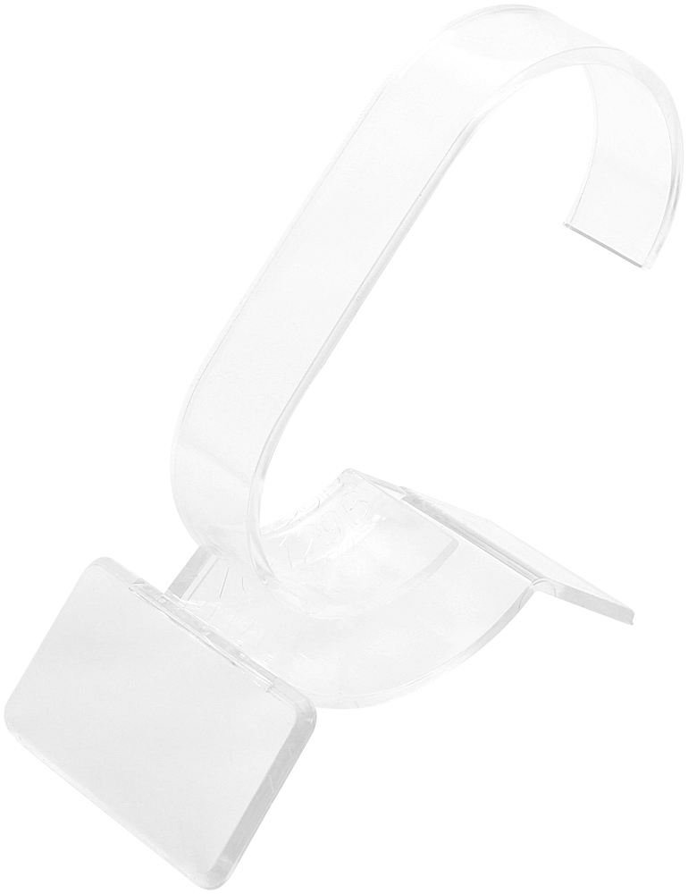 Auf den kleinen Uhrenständer aus Kunststoff lassen sich alle Arten von Armbanduhren spannen, um diese zum Beispiel auf einem Display zu präsentieren. Die Uhren lassen sich ganz einfach über die Spange ziehen und der leichten Winkels des Uhrenständers sorgt für eine perfekte Präsentation der Ausstellungsstücke. Erhältlich sind die Uhrenständer in Transparent, Schwarz oder Weiß. Die Maße der Uhrenspange an sich betragen 79 mm in der Länge, 15 mm in der Breite und 42 mm in der Tiefe. Der gesamte Uhrenständer präsentiert sich mit den Maßen: 11 x 4,5 x 7 cm.