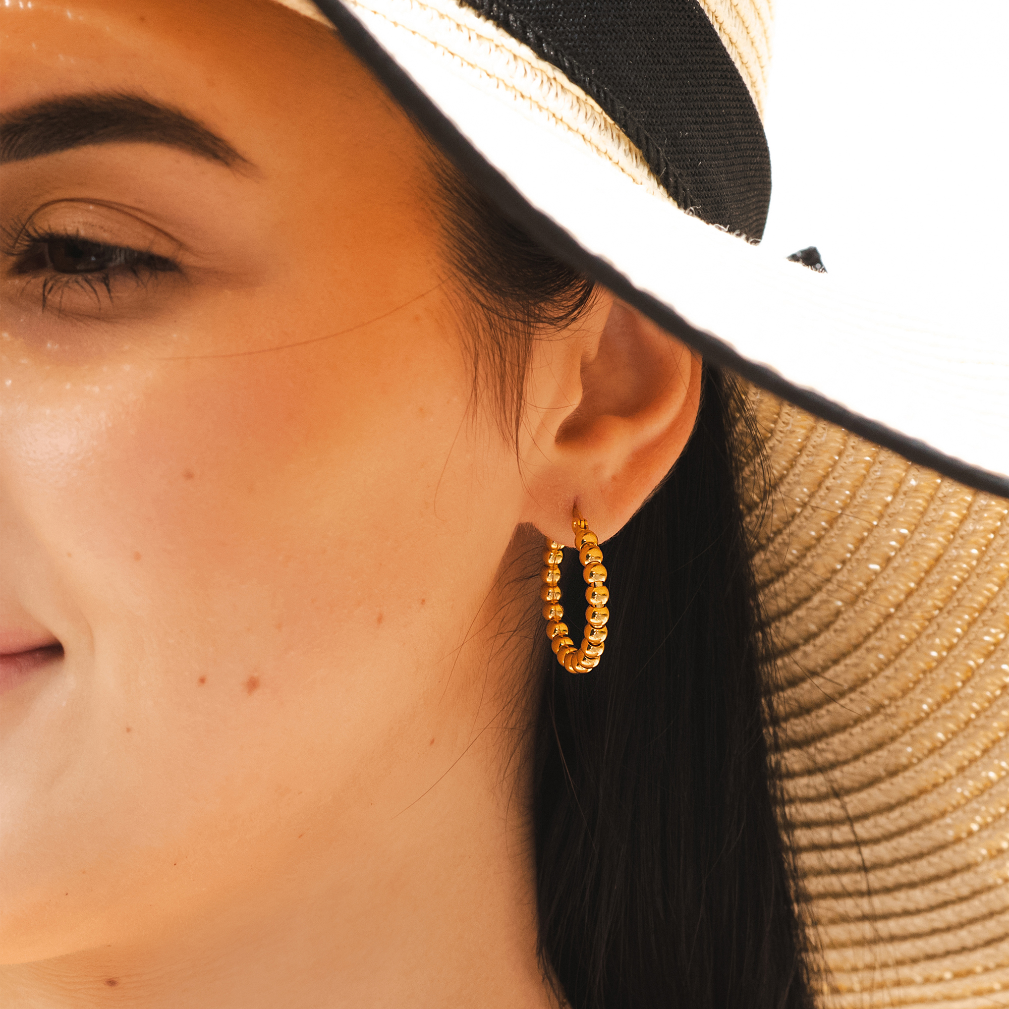 Das besondere Design besticht durch präzise aneinandergereihte Edelstahl-Kugeln, die am Ohr ein echtes Trend-Highlight setzen.