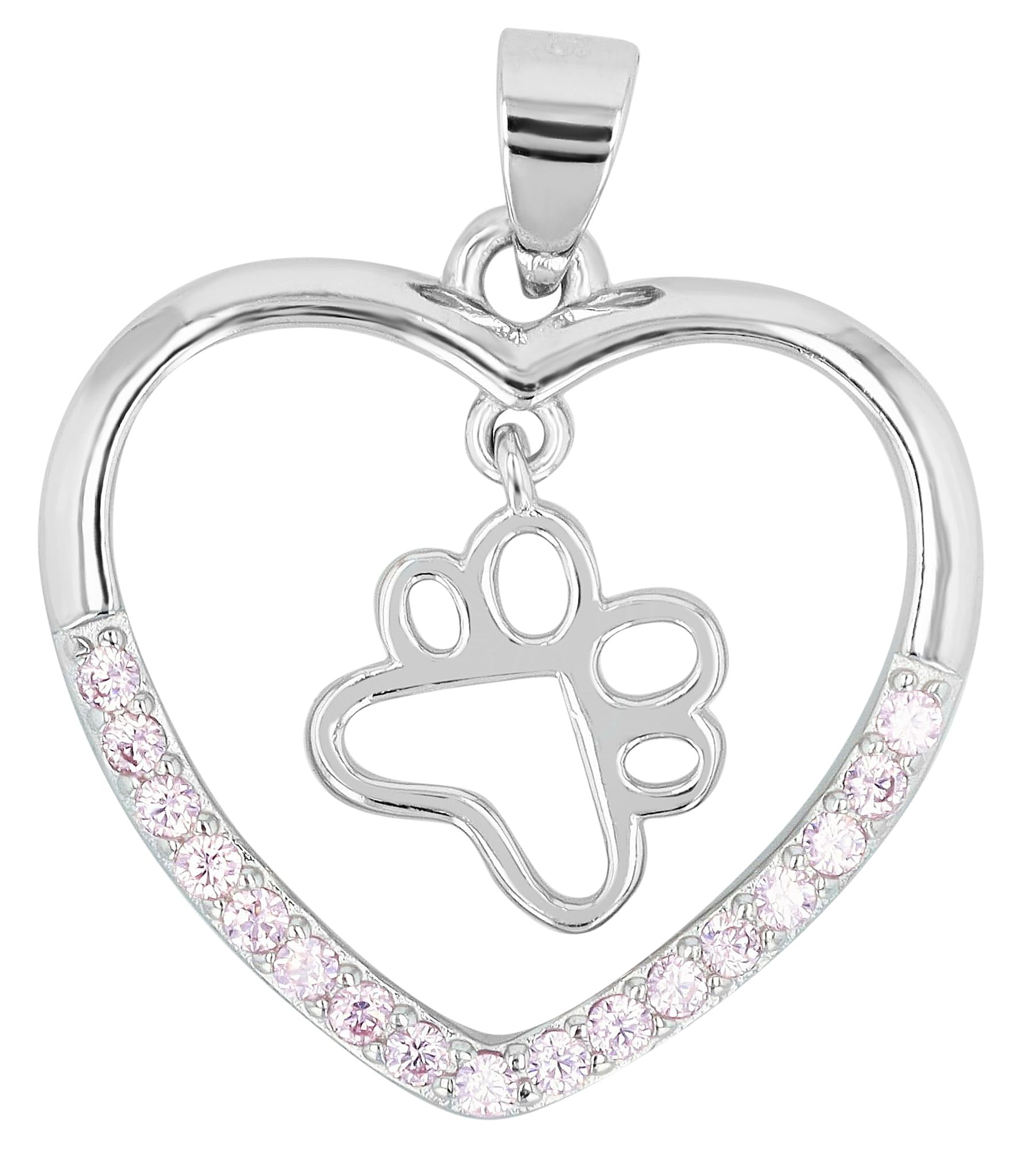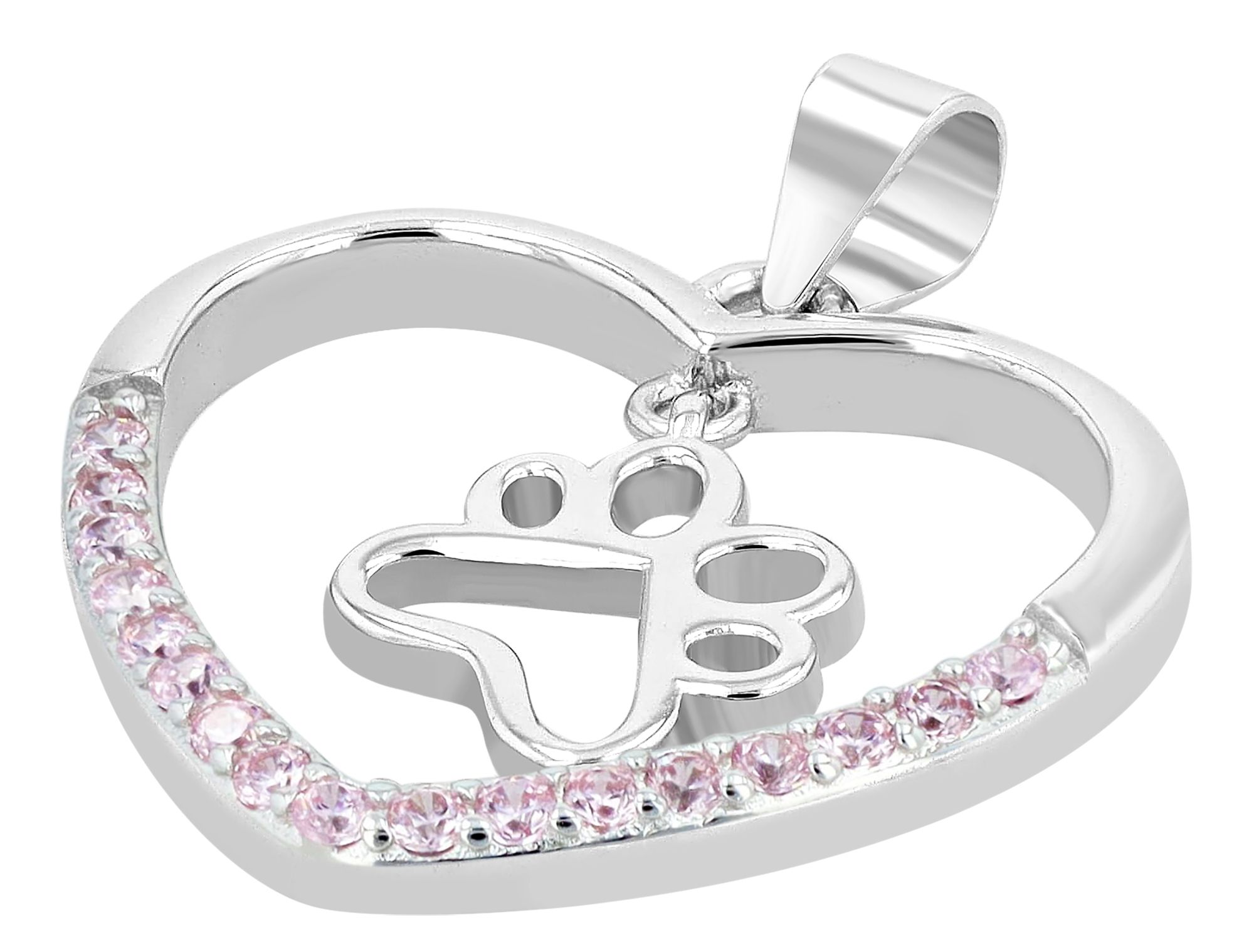 Produktinformationen ""Kuma", 925/- Echt Silber Anhänger Herz mit Pfote, weiße Zirkonia, rhodiniert"