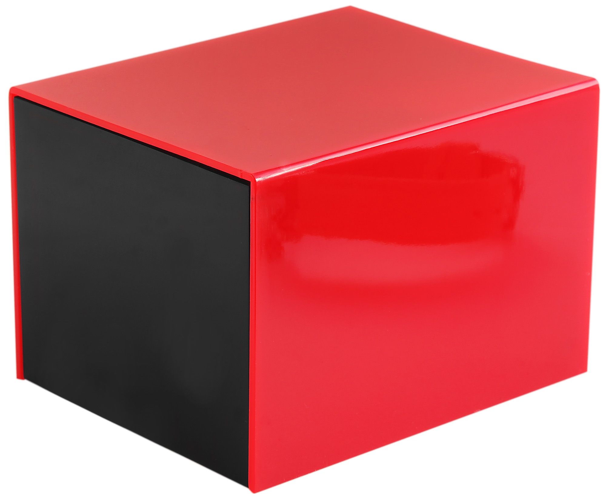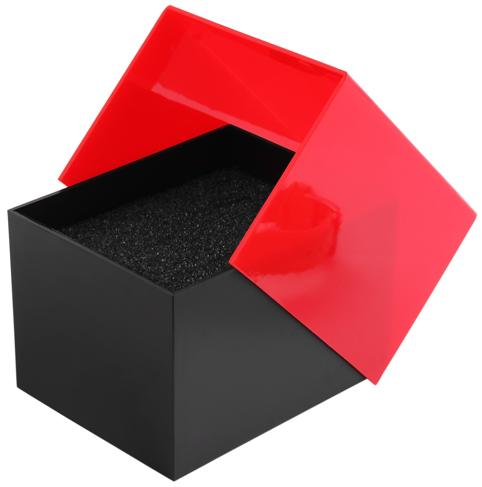 Produktinformationen "Kunststoff-Uhrenbox, schwarz/rot, Klappdeckel, VE 12, 9,9 cm x 8,1 cm x 6,8 cm"
