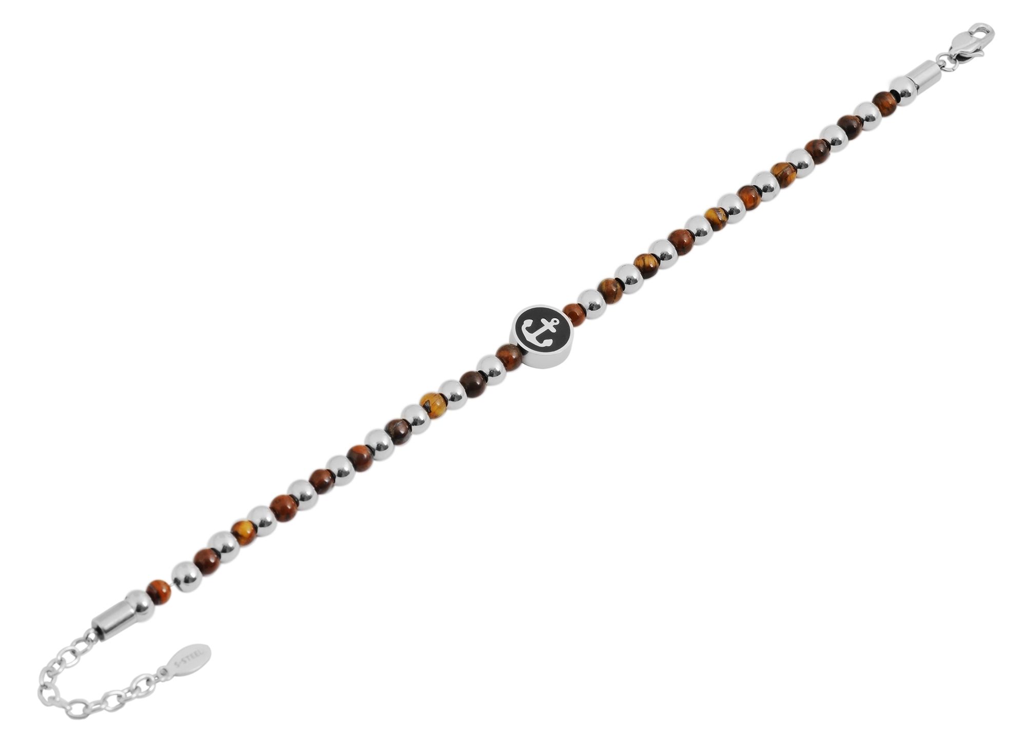 Produktinformationen ""Kyano" Kugelarmband aus Edelstahl, maritim, braun/silberfarben 19 + 3 cm"
