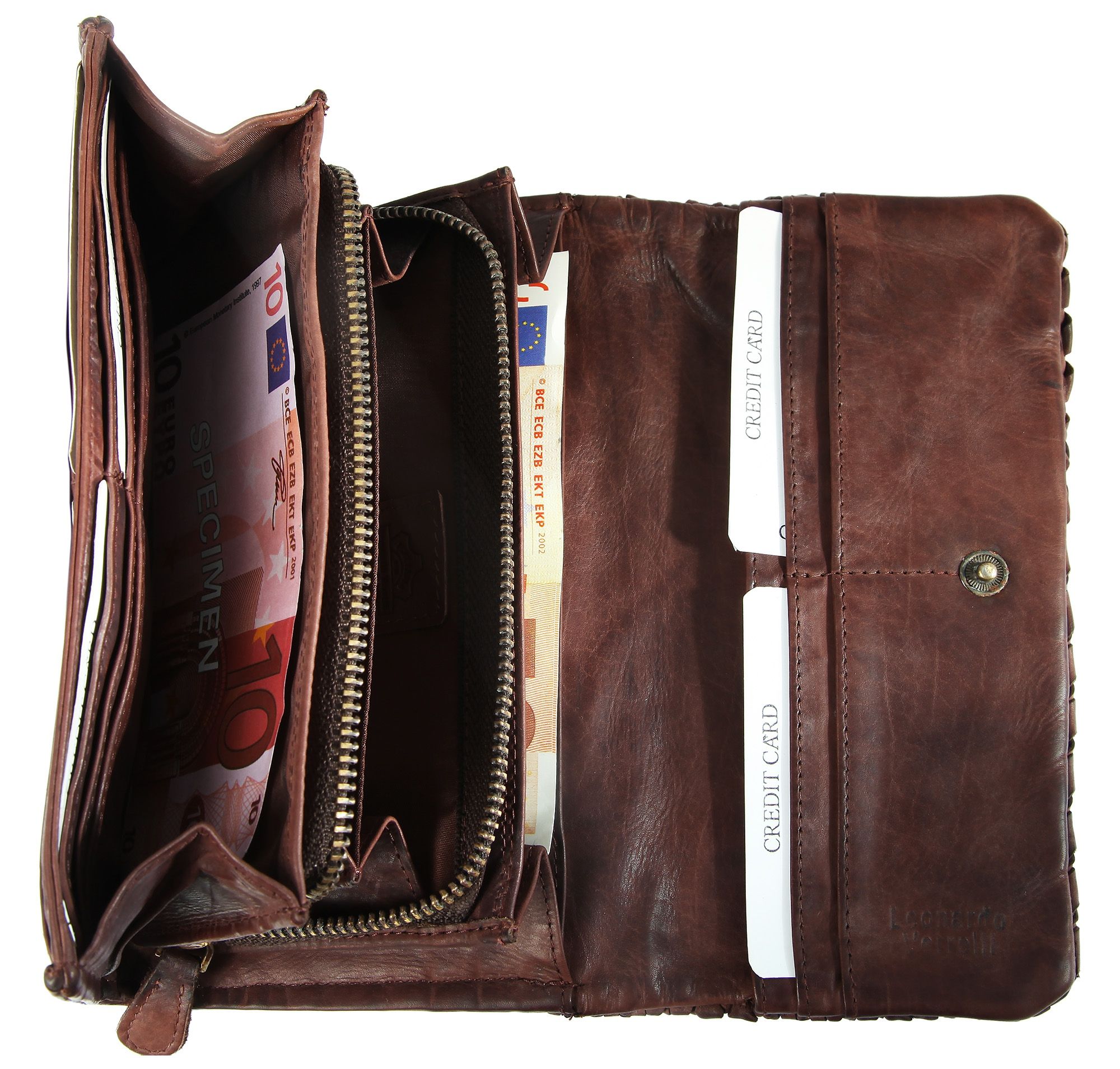 Produktinformationen "Leonardo Verrelli Damengeldbörse aus Echtleder, RFID-Schutz, dunkelbraun"