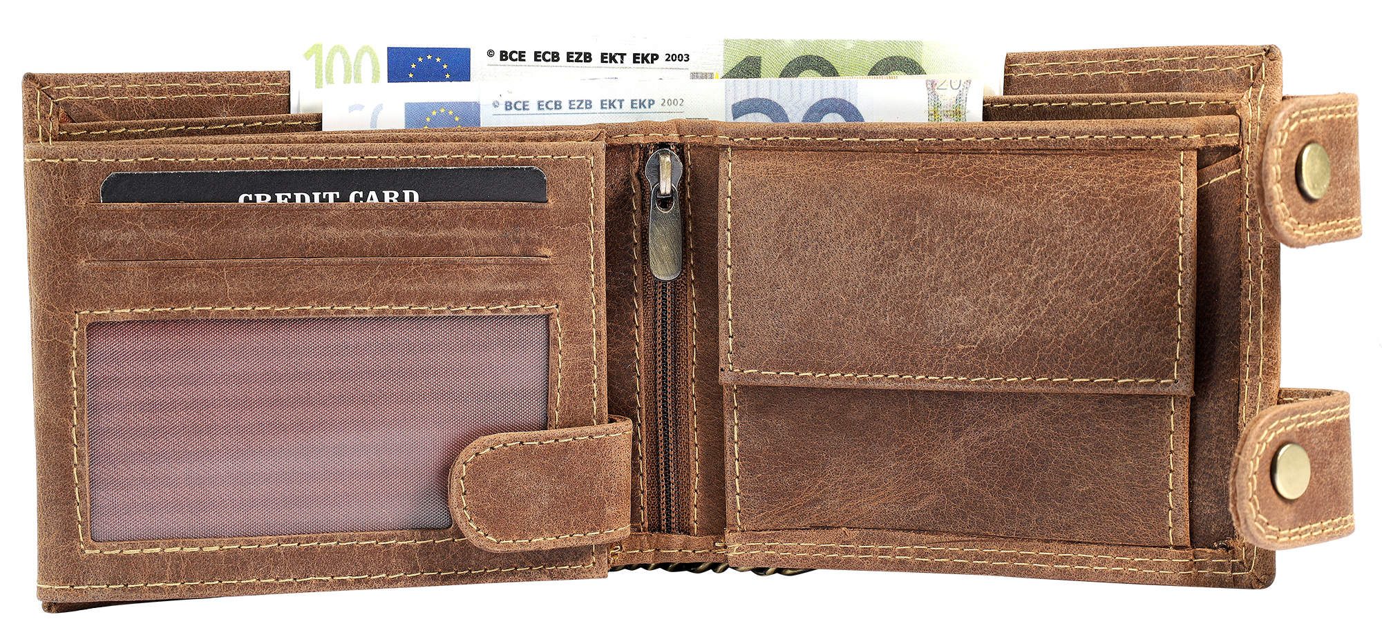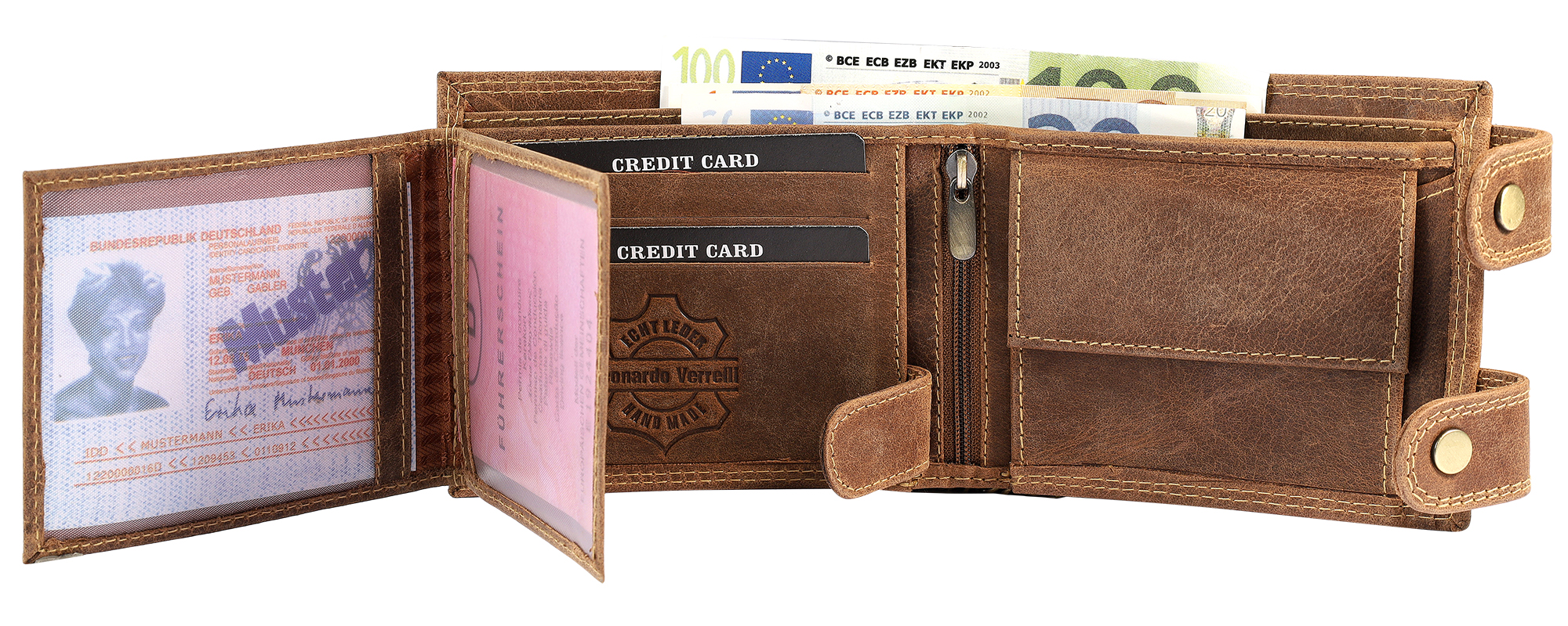 Entdecken Sie die markante Leonardo Verrelli Geldbörse im , perfekt im authentischen Biker Style. Gefertigt aus 100% echtem Büffelleder und veredelt im charakteristischen Hunter-Look, strahlt jede Geldbörse einen einzigartigen Vintage-Charakter aus. Echtes Büffelleder ist besonders robust und entwickelt mit der Zeit eine wunderschöne Patina, die jedes Stück zu einem absoluten Unikat macht.