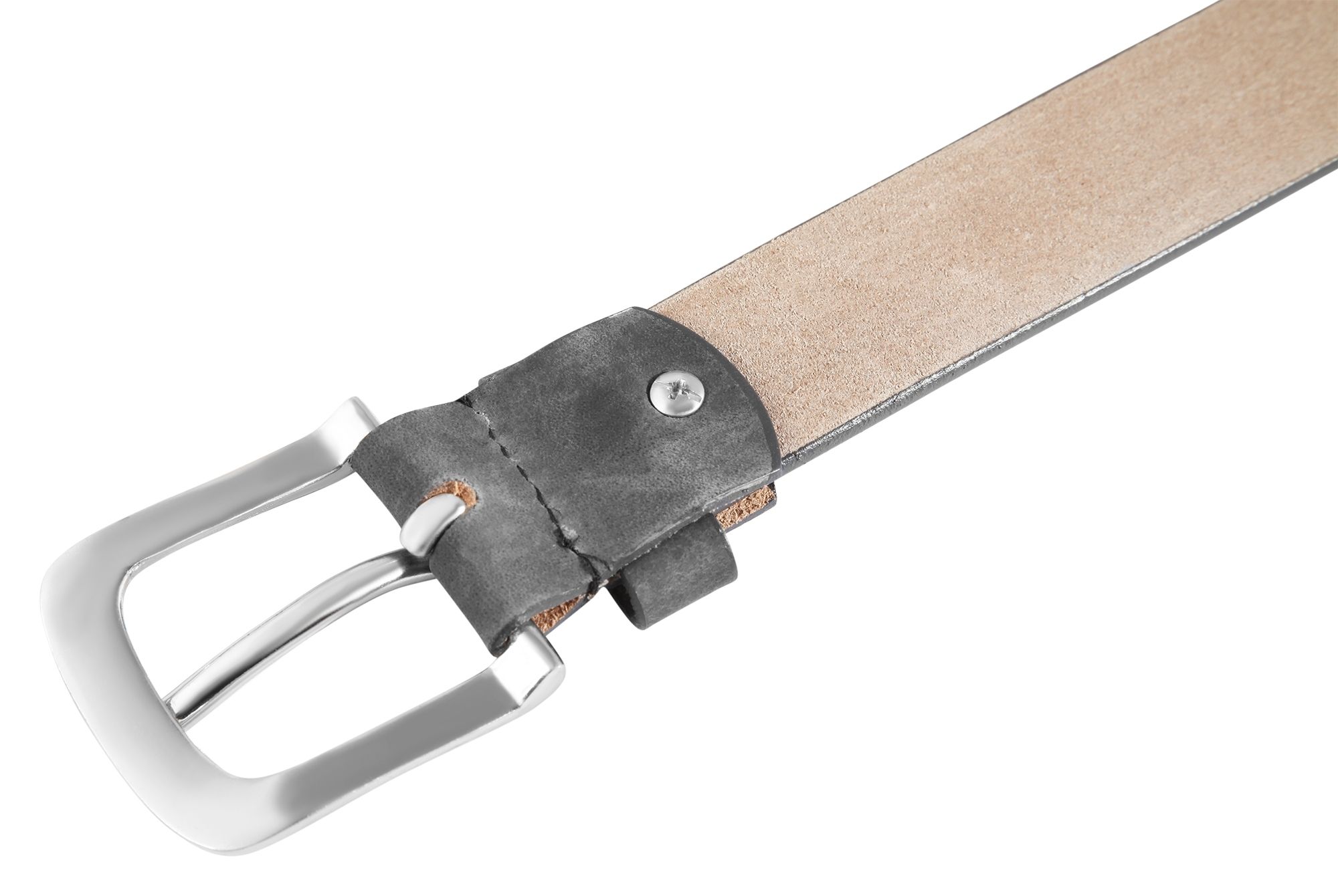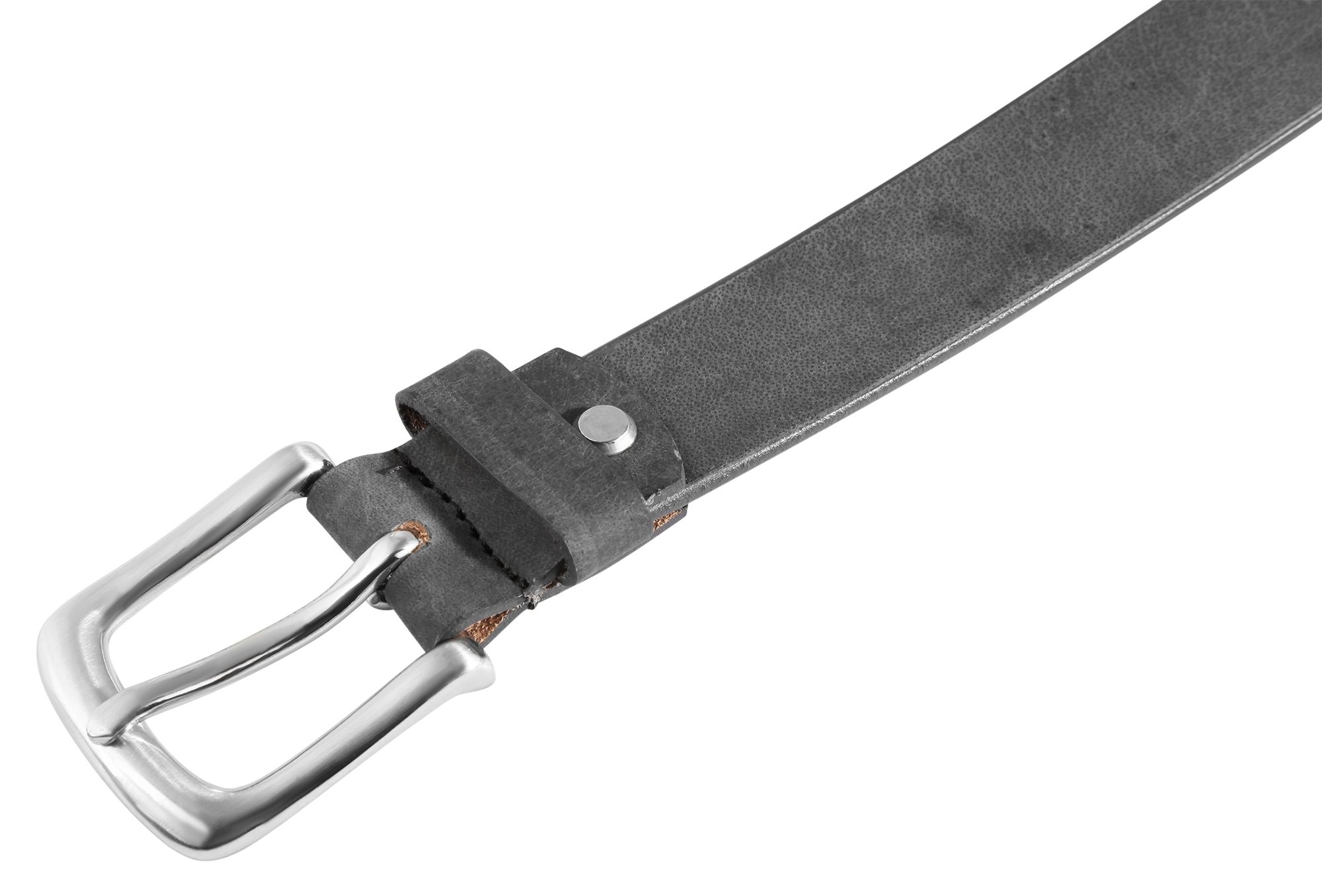 Der graue Gürtel der Marke Leonardo Verrelli ist aus Echtleder gefertigt und hat eine glatte, samtweiche Oberfläche. Der Gürtel ist 3,4 cm breit und hat eine Stärke von 4 mm. Der Gürtel hat eine Bundweite von 85 cm. Der Gürtel hat eine silberfarbene aus Metall gefertigte, per Hand vernähte Dornschließe. Die Löcher für den Dorn sind im Abstand von 2 cm angeordnet. Es handelt sich bei dem Gürtel um einen schönen Freizeitgürtel, der sich gut kombinieren lässt. Der Gürtel ist kürzbar.