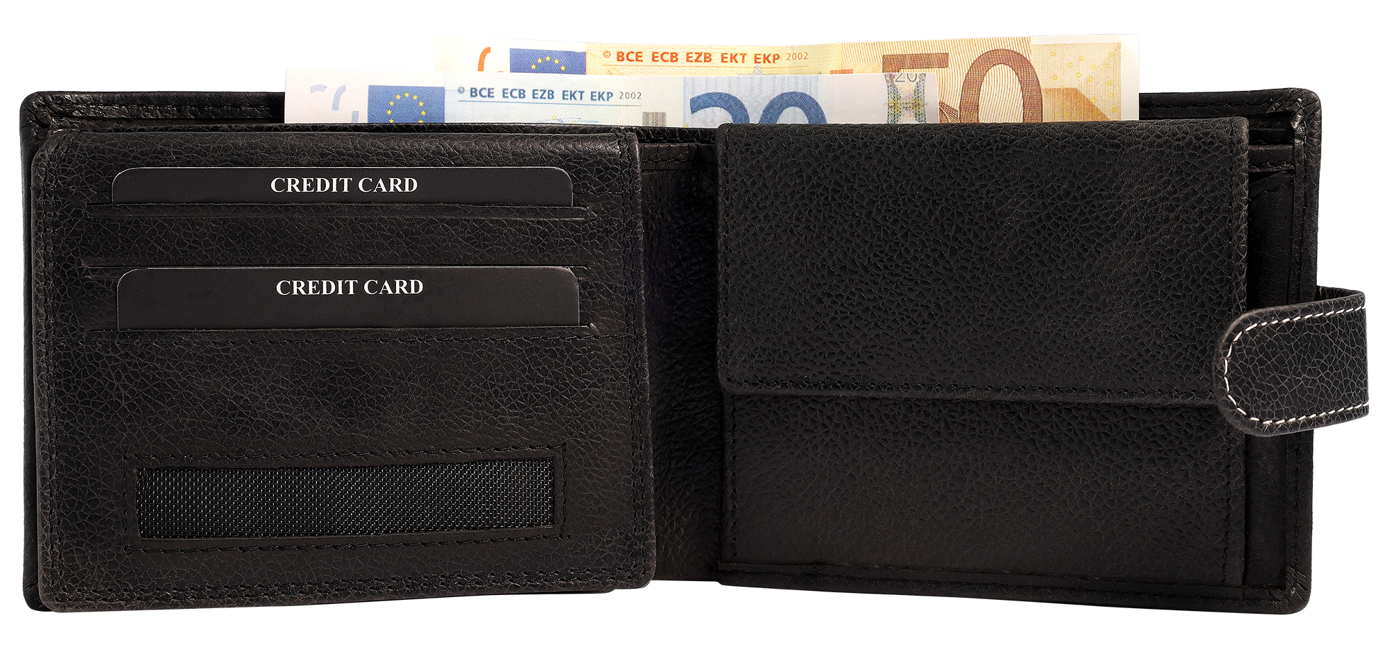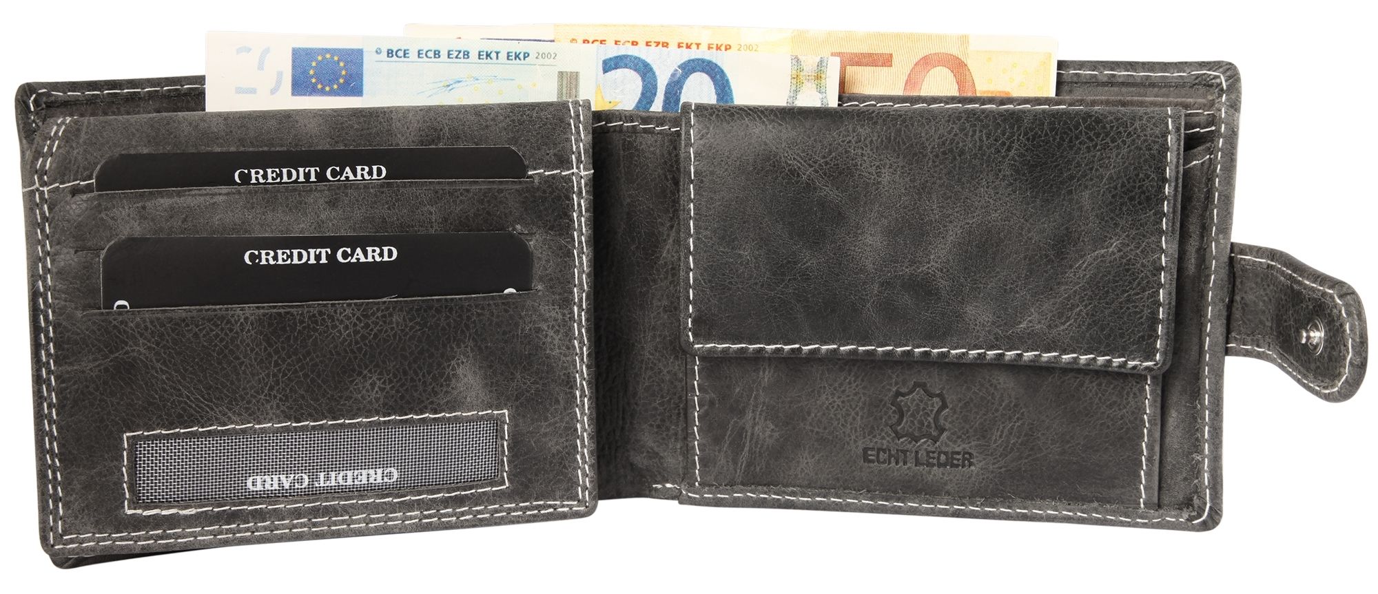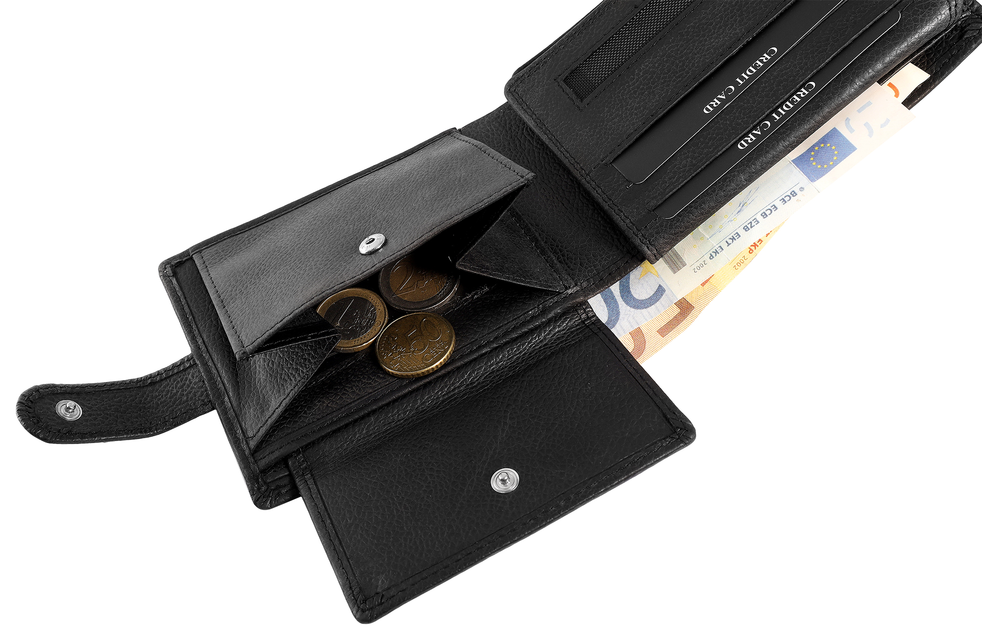 - 2 Geldscheinfächer: Für die getrennte Aufbewahrung von Scheinen.