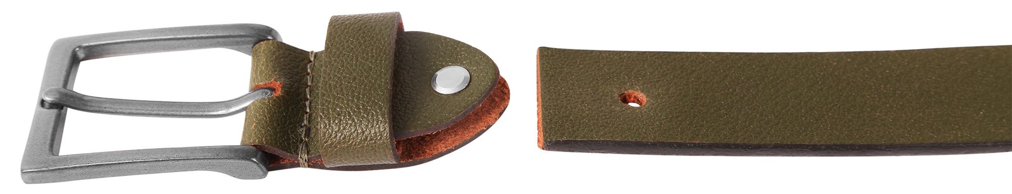 Der grüne Gürtel der Marke Leonardo Verrelli ist aus echtem Büffelleder gefertigt hat eine leicht vernarbte, angeraute Oberfläche. Der Gürtel ist 3,3 cm breit und ist somit vielseitig einsetzbar, denn er lässt sich durch die herkömmlichen Gürtelschlaufen problemlos durchziehen. Die Stärke beträgt 0,3 cm und die Bundweite 90 cm. Der Gürtel hat eine aus Metall gefertigte, per Hand vernähte Dornschließe. Die Löcher sind im Abstand von 2 cm angeordnet. Eine Besonderheit ist, dass der Gürtel in der Länge beliebig kürzbar ist. Dazu muss unterhalb der Dornschließe mit einem Schraubendreher eine Schrauben gelöst und auf die beliebige Länge angepasst werden. Der Gürtel ist ein schöner Freizeitgürtel, den man vielfältig kombinieren kann. Er ist aufgrund des hochwertigen Materials sehr robust, langlebig und reißfest. Die Größe des Gürtels wird in Bundweite angegeben, welche 15 cm kürzer als die Gesamtlänge ist.
