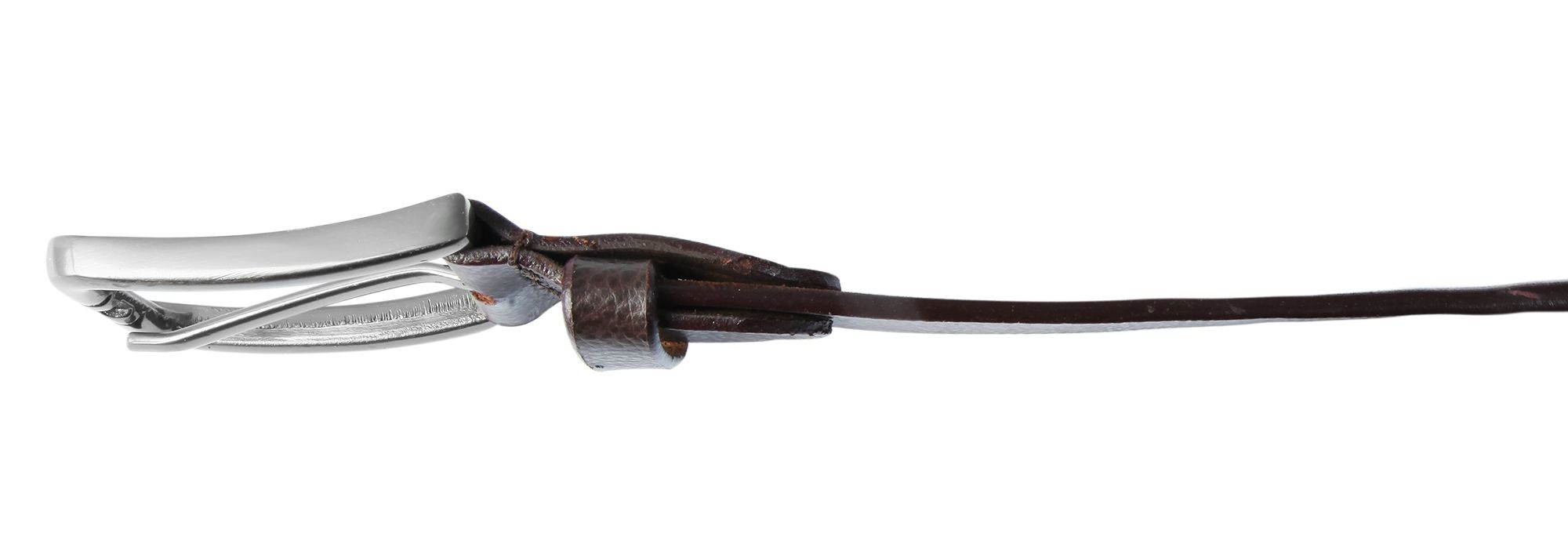 Der braune Gürtel der Marke Leonardo Verrelli ist aus Echtleder gefertigt und präsentiert sich im glatten Finish mit individueller Maserung. Er hat eine Bundweite von 110 cm, ist 3,5 cm breit und 0,3 cm dick. Die Löcher sind im Abstand von 2 cm angeordnet. Somit ist der Herrengürtel vielseitig einsetzbar, denn er lässt sich durch die herkömmlichen Gürtelschlaufen problemlos durchziehen. Aufgrund des hochwertigen und natürlichen Materials ist dieser Gürtel besonders robust, langlebig und reißfest und wird dadurch zu einem idealen Begleiter für alle Anlässe. Die aus Metall gefertigte Dornschließe ist mit einer Schraube befestigt, wodurch der Gürtel leichthändig gekürzt und auf die beliebige Bundweite angepasst werden kann. Die Größe des Gürtels wird in Bundweite angegeben, welche 15 cm kürzer als die Gesamtlänge ist.