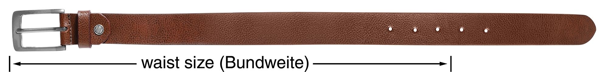 Der dunkelbraune Gürtel der Marke Leonardo Verrelli ist aus Echtleder gefertigt und präsentiert sich im glatten Finish mit individueller Maserung. Er ist in verschiedenen Bundweiten erhältlich, ist 3,5 cm breit und 0,3 cm dick. Die Löcher sind im Abstand von 2 cm angeordnet. Somit ist der Herrengürtel vielseitig einsetzbar, denn er lässt sich durch die herkömmlichen Gürtelschlaufen problemlos durchziehen. Aufgrund des hochwertigen und natürlichen Materials ist dieser Gürtel besonders robust, langlebig und reißfest und wird dadurch zu einem idealen Begleiter für alle Anlässe. Die aus Metall gefertigte Dornschließe ist mit Schrauben befestigt, wodurch der Gürtel leichthändig gekürzt werden und auf die beliebige Bundweite angepasst werden kann. Die Größe des Gürtels wird in Bundweite angegeben, welche 15 cm kürzer als die Gesamtlänge ist.