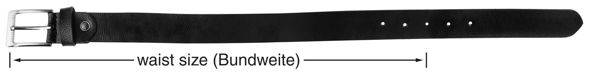 Der schwarze Gürtel der Marke Leonardo Verrelli ist aus Echtleder gefertigt und präsentiert sich im glatten Finish mit individueller Maserung. Er hat eine Bundweite von 100 cm, ist 3,5 cm breit und 0,3 cm dick. Die Löcher sind im Abstand von 2 cm angeordnet. Somit ist der Herrengürtel vielseitig einsetzbar, denn er lässt sich durch die herkömmlichen Gürtelschlaufen problemlos durchziehen. Aufgrund des hochwertigen und natürlichen Materials ist dieser Gürtel besonders robust, langlebig und reißfest und wird dadurch zu einem idealen Begleiter für alle Anlässe. Die aus Metall gefertigte Dornschließe ist mit Schrauben befestigt, wodurch der Gürtel leichthändig gekürzt werden und auf die beliebige Bundweite angepasst werden kann. Die Größe des Gürtels wird in Bundweite angegeben, welche 15 cm kürzer als die Gesamtlänge ist.